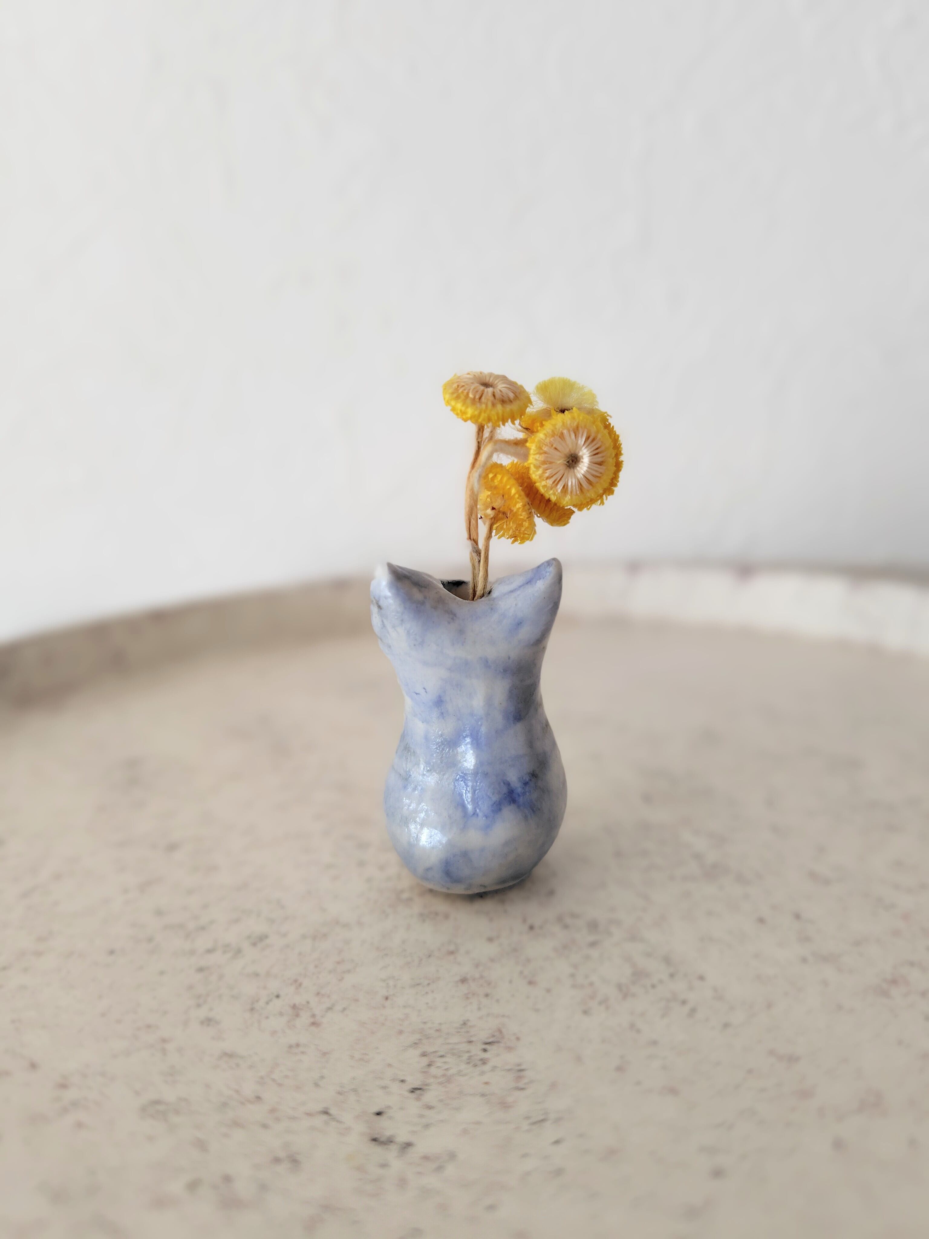ミニミニ猫花瓶(青)ドライフラワー付き
