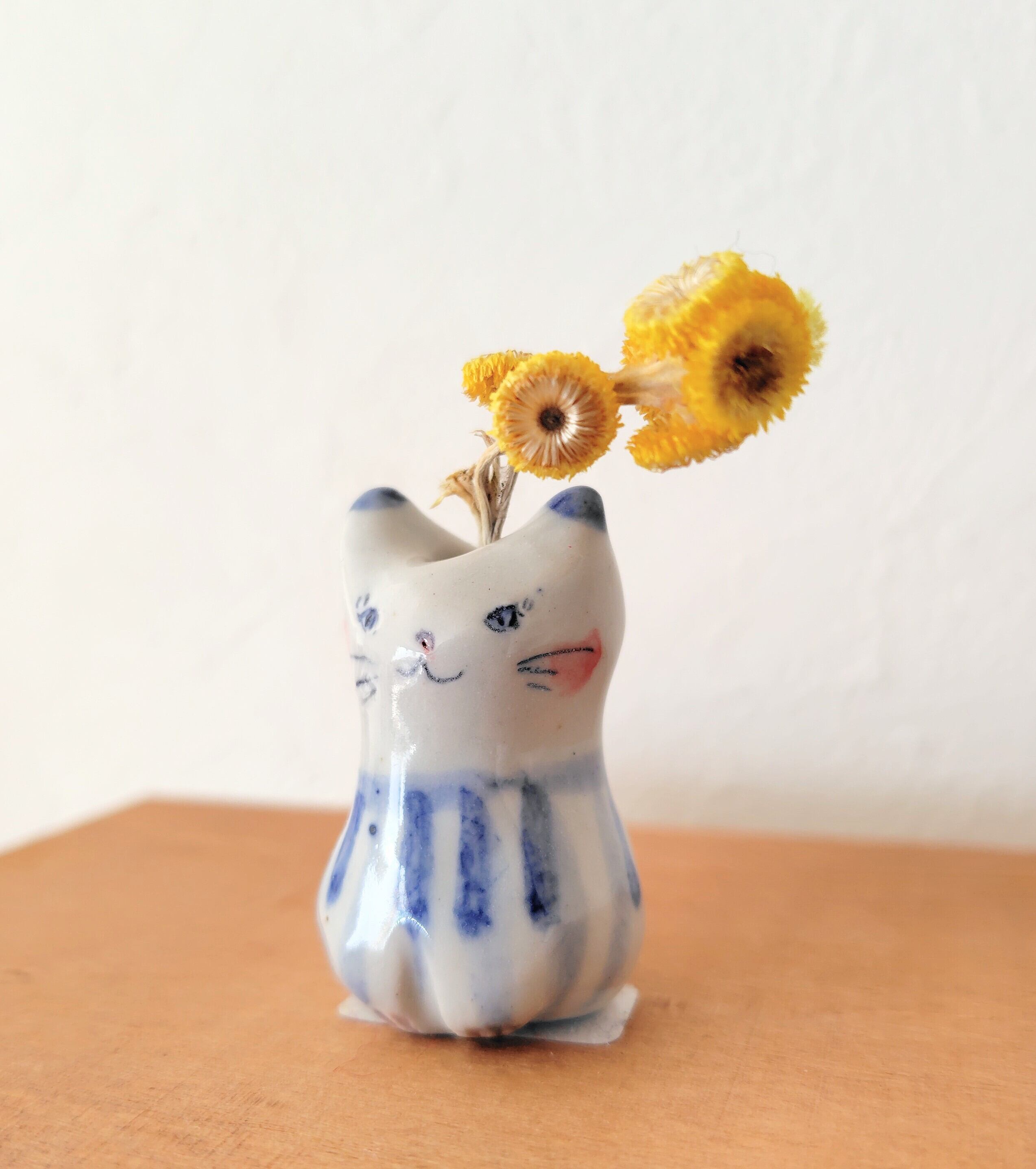 心温まるこの猫花瓶は、大切な人への贈り物にも最適です!音楽や猫が好きな方へのサプライズギフトとして、きっと喜ばれることでしょう。手仕事による1点物として、受け取る方の記憶に深く刻まれる特別なギフトとして、ぜひご利用ください!!