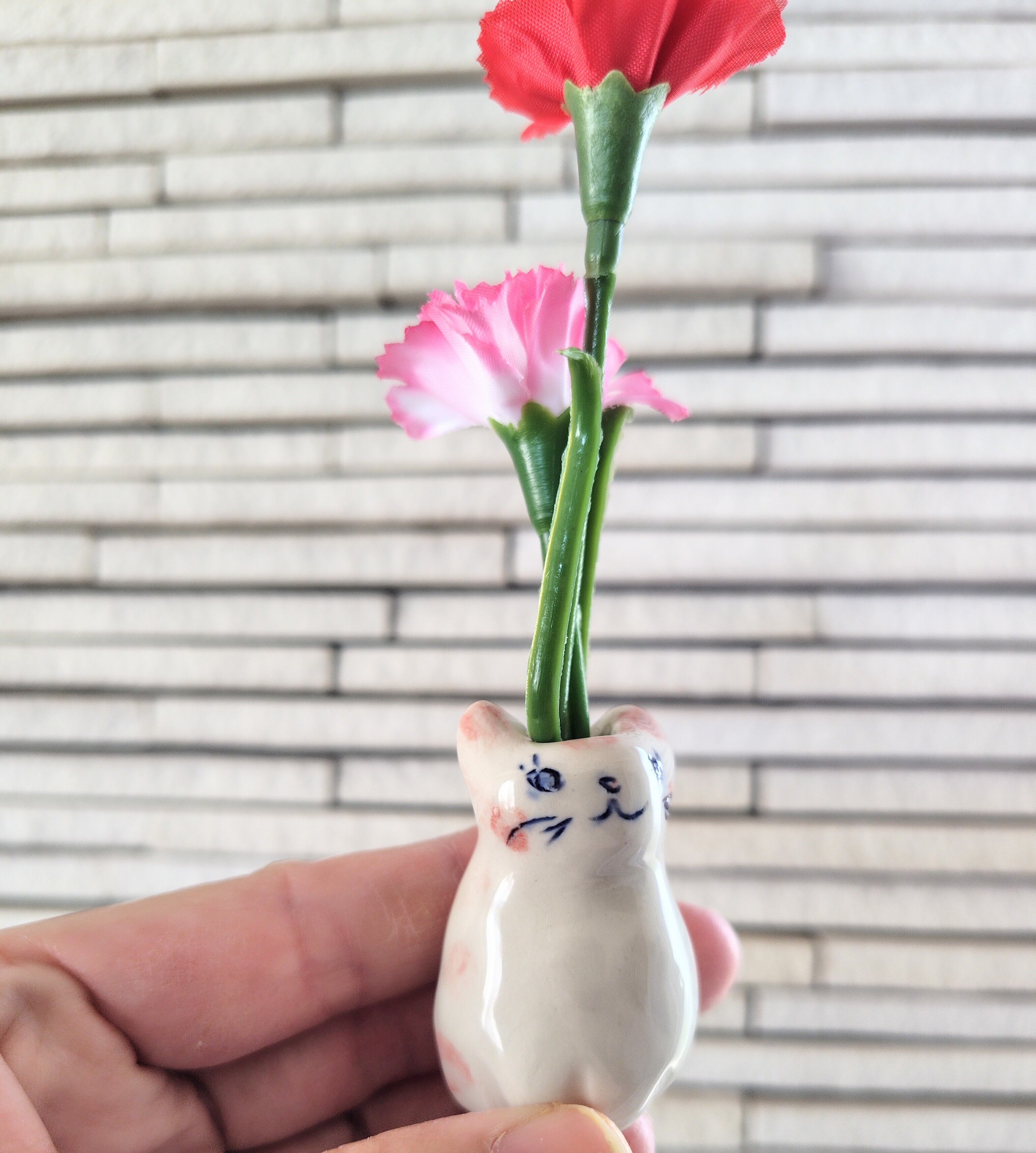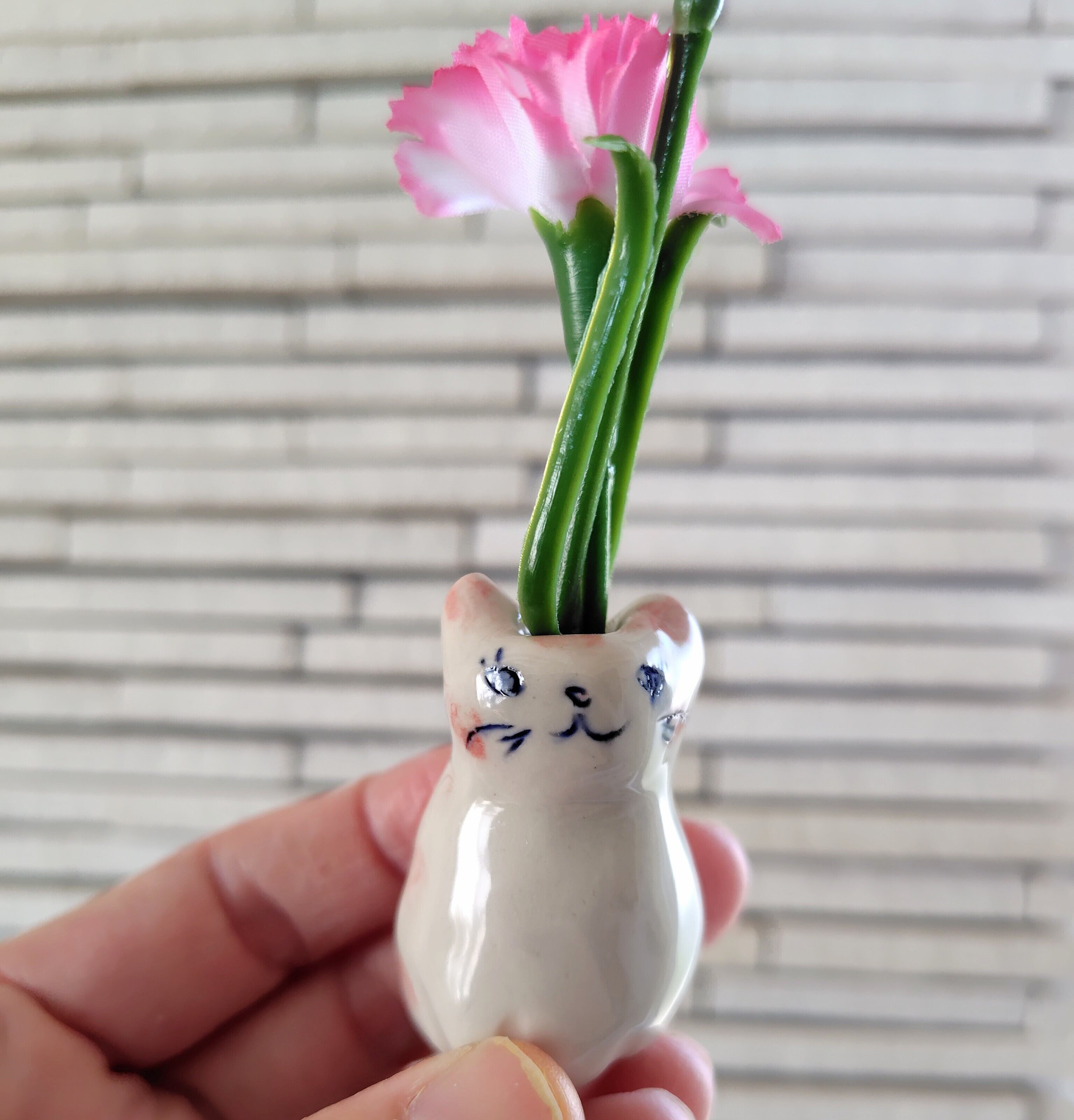 手仕事で丁寧に作られた陶磁器製のねこ花瓶は、母の日にぴったりなデザインが特徴です!愛らしい猫の姿が見る人の心を癒し、焼き物特有の美しいツヤが際立っています。高さ約4.5センチで、ドライフラワーや小さなお花を飾るのに最適なサイズです!そのかわいらしい佇まいは、特別な気持ちを伝えるアイテムとしても大活躍し、お香立てとしての利用もできるおしゃれな逸品です!