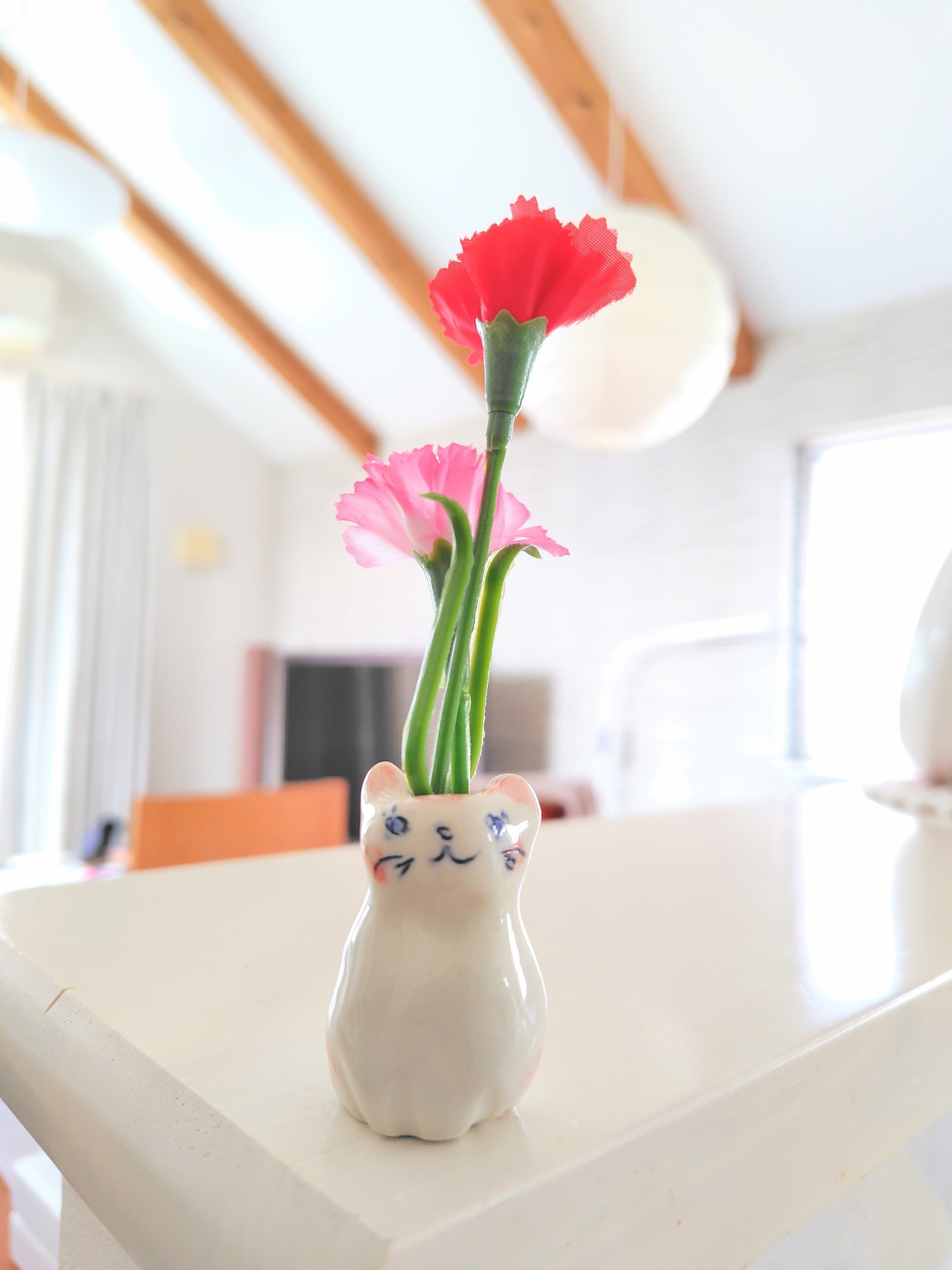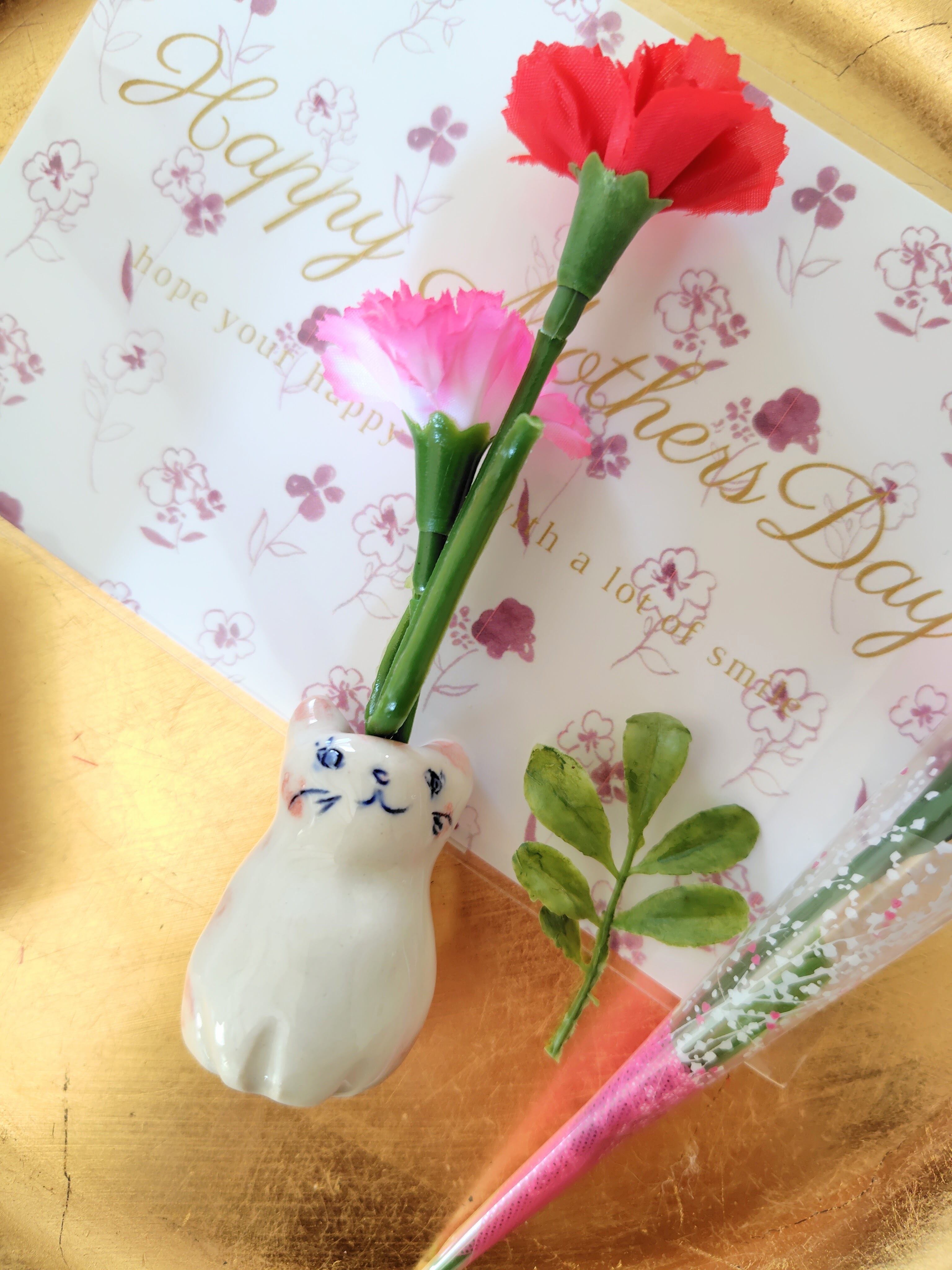 ねこ花瓶(①母の日ポストカード、②ギフトBOX、③カーネーション付き)