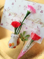 ねこ花瓶(①母の日ポストカード、②ギフトBOX、③カーネーション付き)