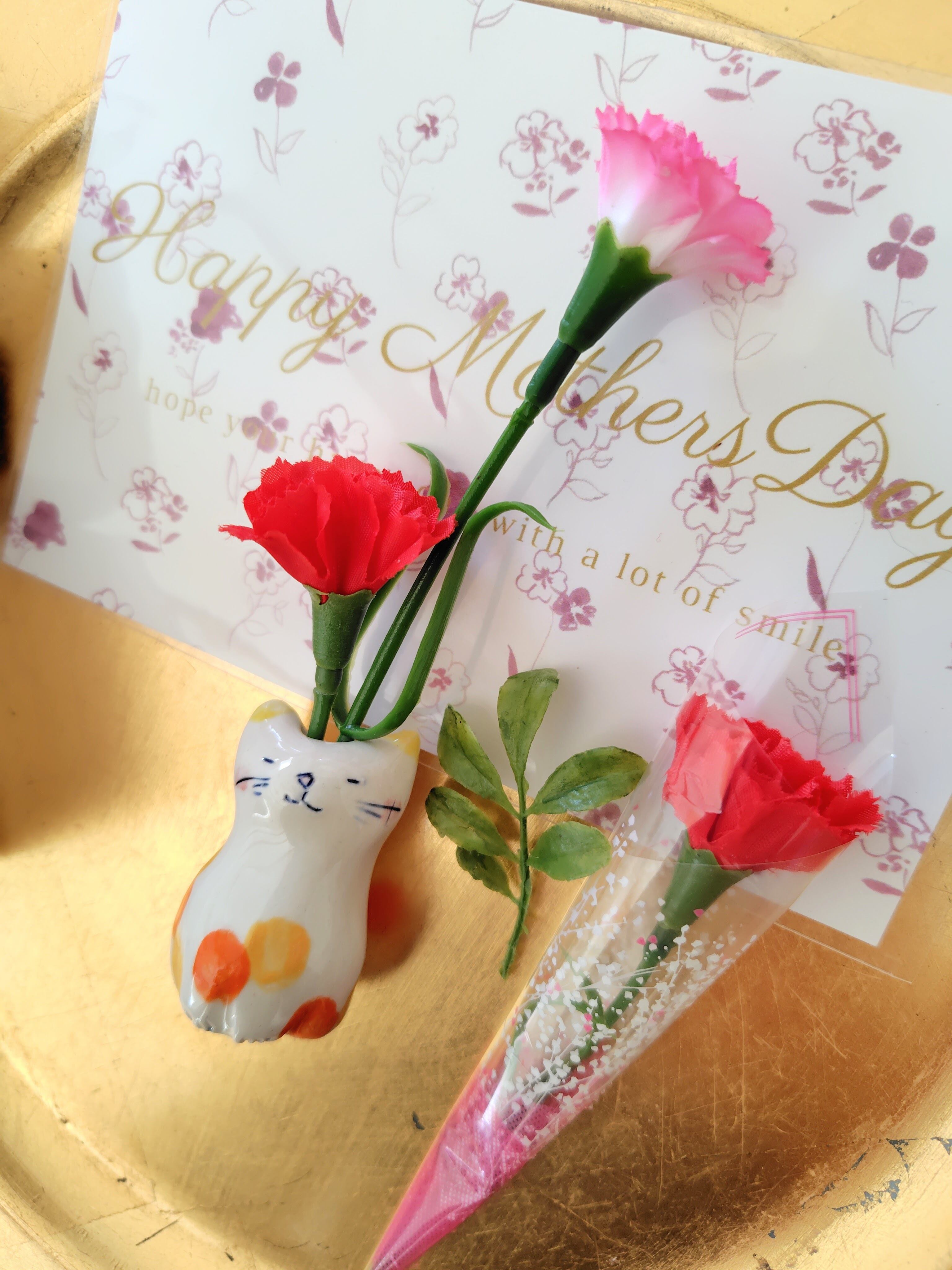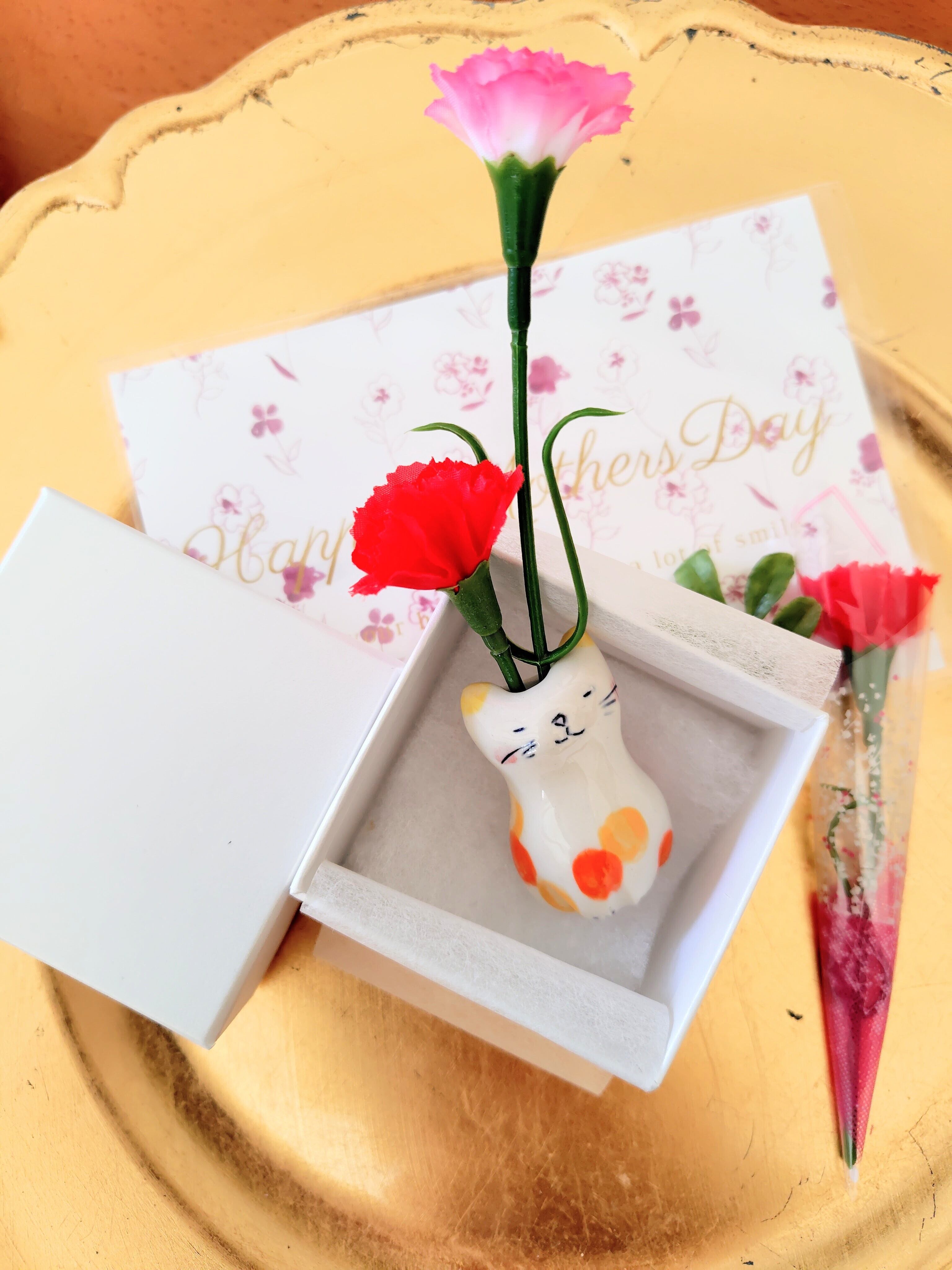 商品名:ねこ花瓶(①母の日ポストカード、②ギフトBOX、③カーネーション付き)