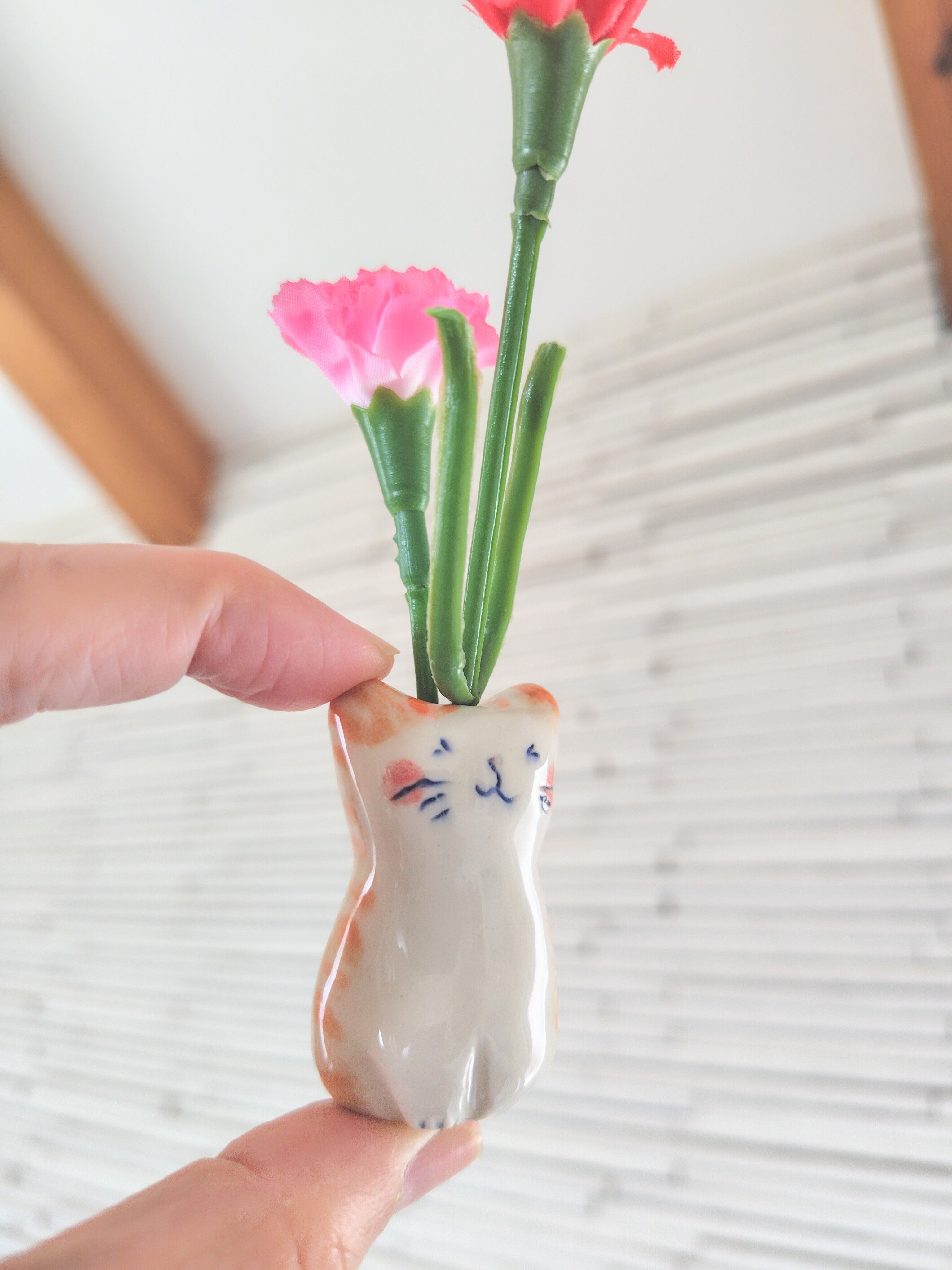 手仕事で丁寧に作られた陶磁器製のねこ花瓶は、母の日に最適なデザインが特徴です!愛らしい猫の姿が見る人の心を癒し、焼き物ならではの美しいツヤが際立ちます。高さ約4.5センチで、ドライフラワーや小さなお花を飾るのにぴったりなサイズです!そのかわいらしい佇まいは、女性に特別な気持ちを伝えるアイテムとしても活躍し、お香立てとしての利用もできるおしゃれな贈り物です!
