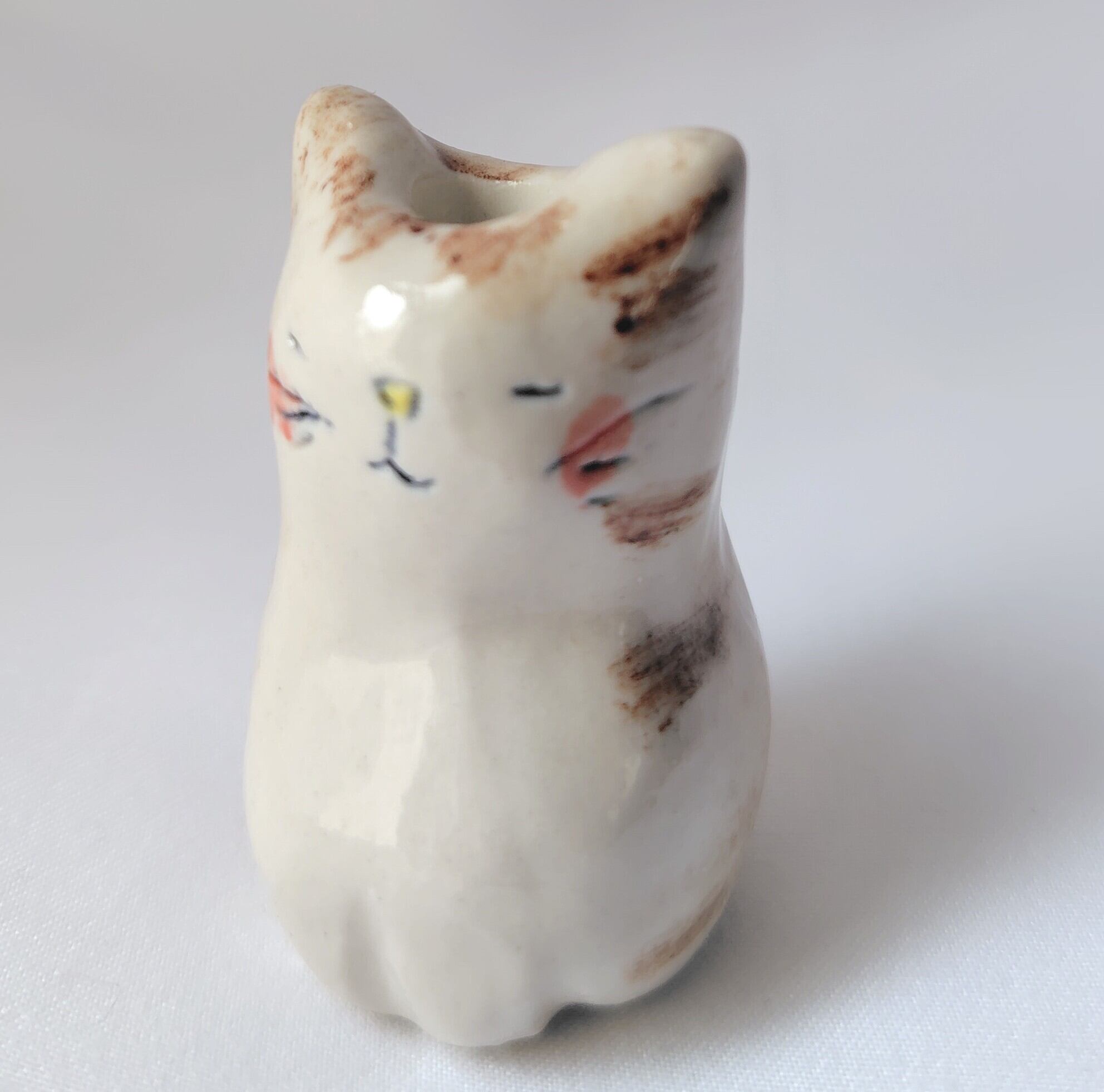 有田の陶芸の土から、丁寧に手仕事で作られた陶磁器製の猫花瓶は、目を瞑った可愛い表情と茶色の柄が特徴です!