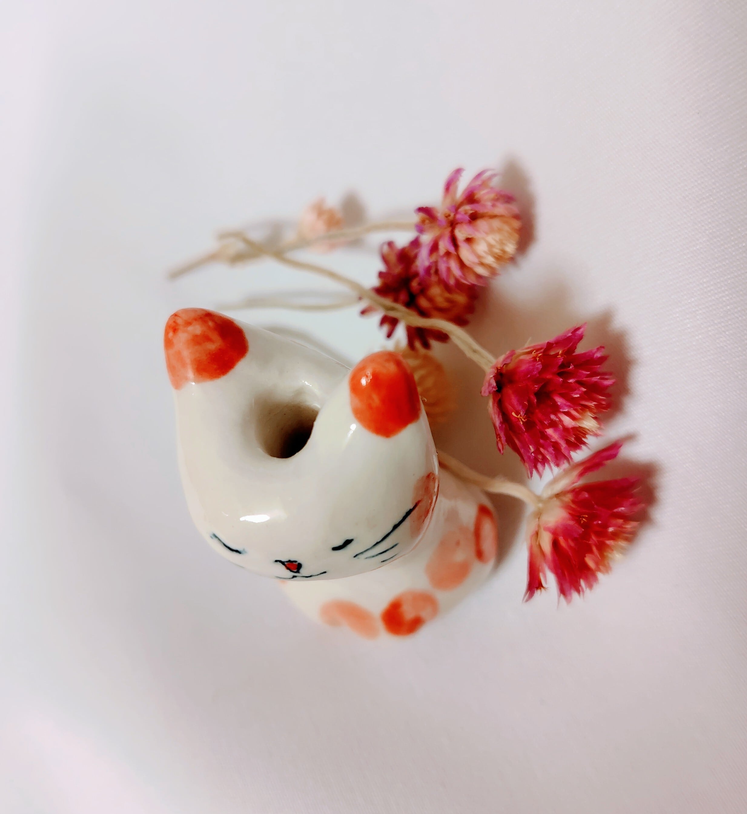 心温まるこの猫花瓶は、大切な人への贈り物にも最適です!お花を愛する方や猫好きな方にも、ぴったりです。独特の手仕事による1点物として、相手の心に残る特別なギフトとして、ぜひご提案ください!!
