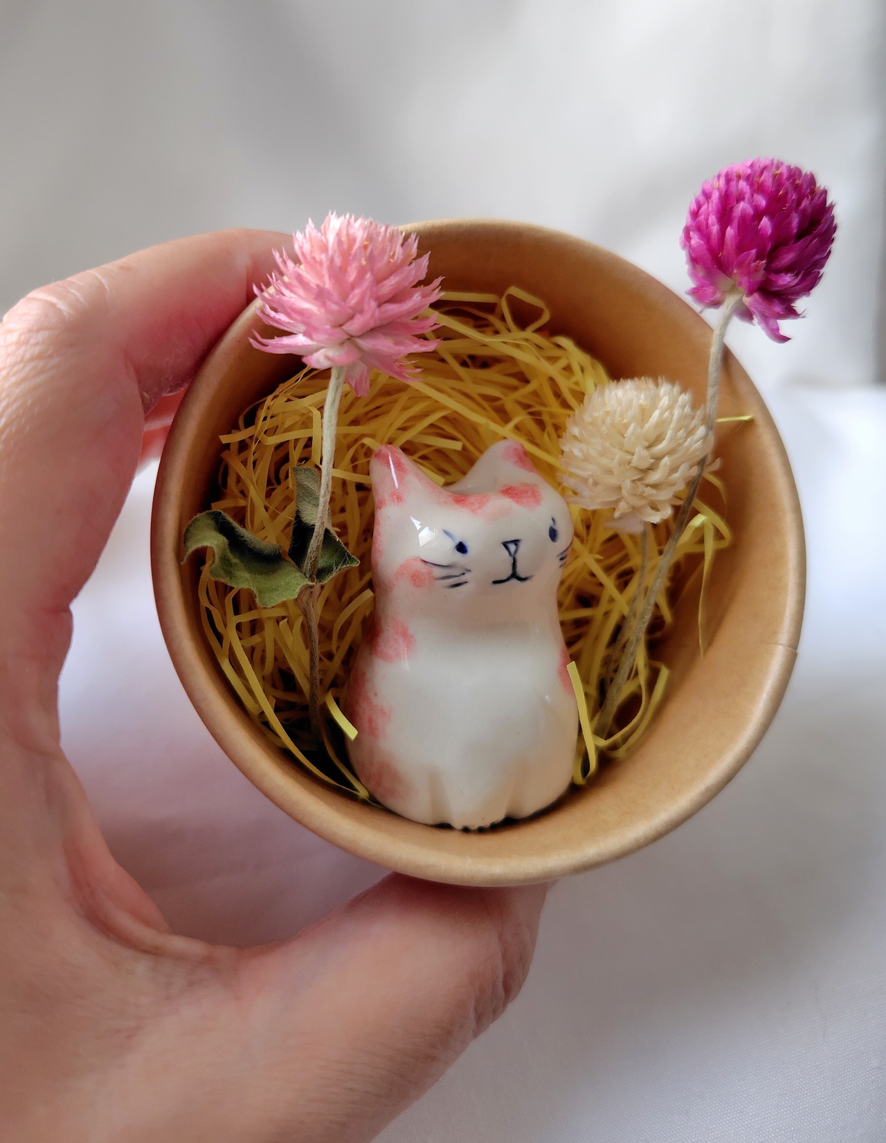 心温まるこの猫花瓶は、大切な人への贈り物にも最適です!お花を愛する方や猫好きな方にも、ぴったりです。独特の手仕事による1点物として、相手の心に残る特別なギフトとして、ぜひご提案ください!!
