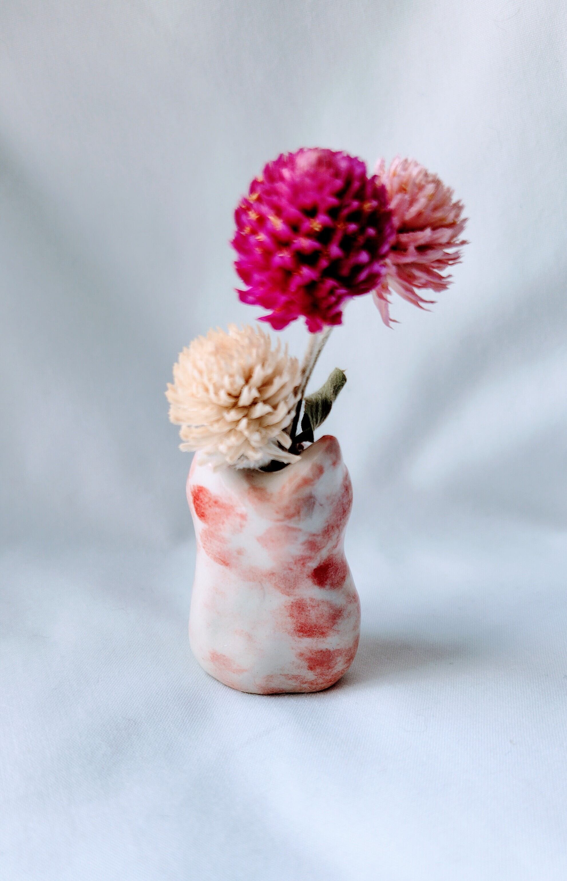 高さ約5センチという絶妙なサイズ感で、ドライフラワーや、生花をお水を入れて飾る事もできます。可愛らしい姿を見るたびに、心が和むことでしょう!