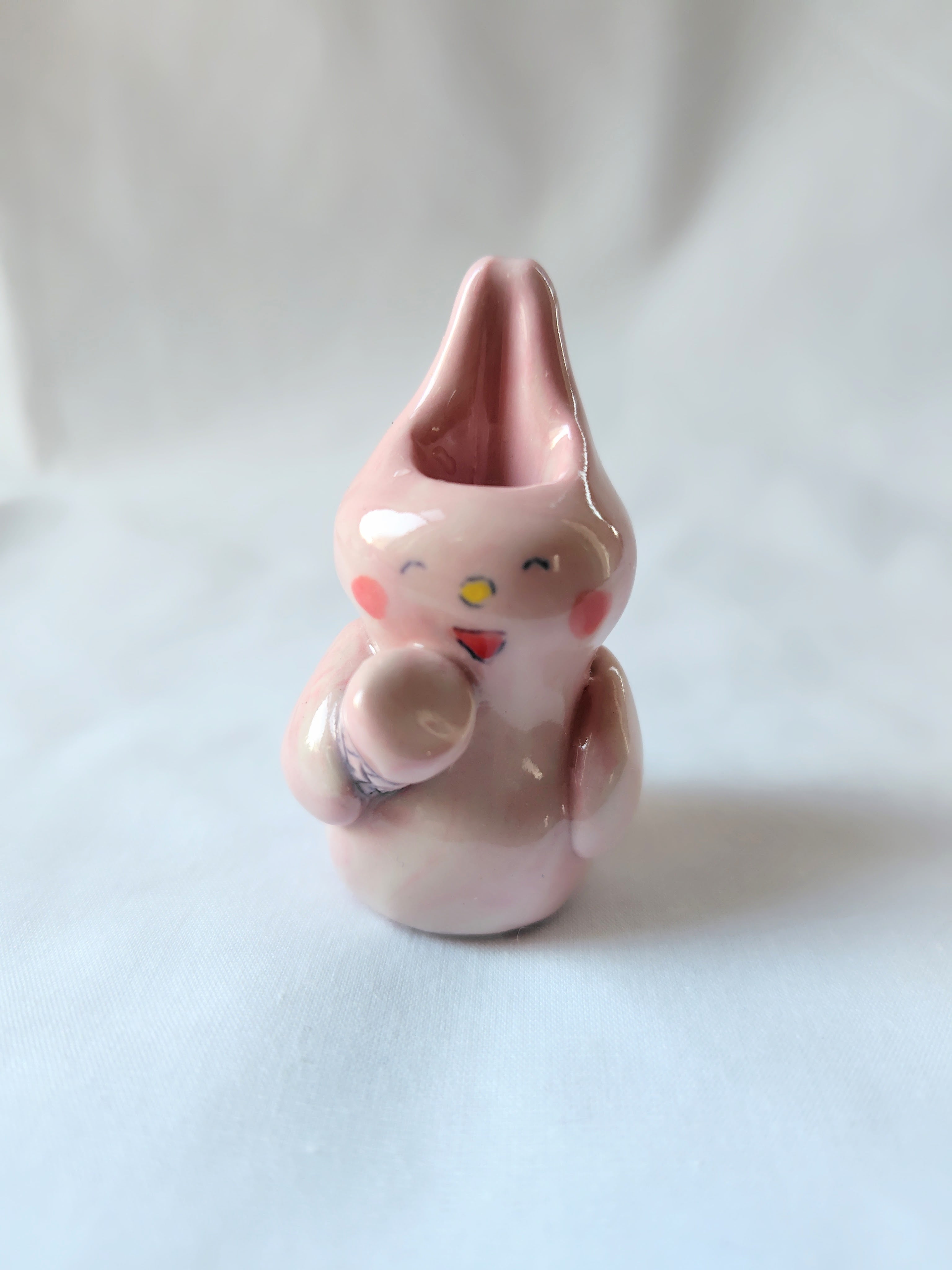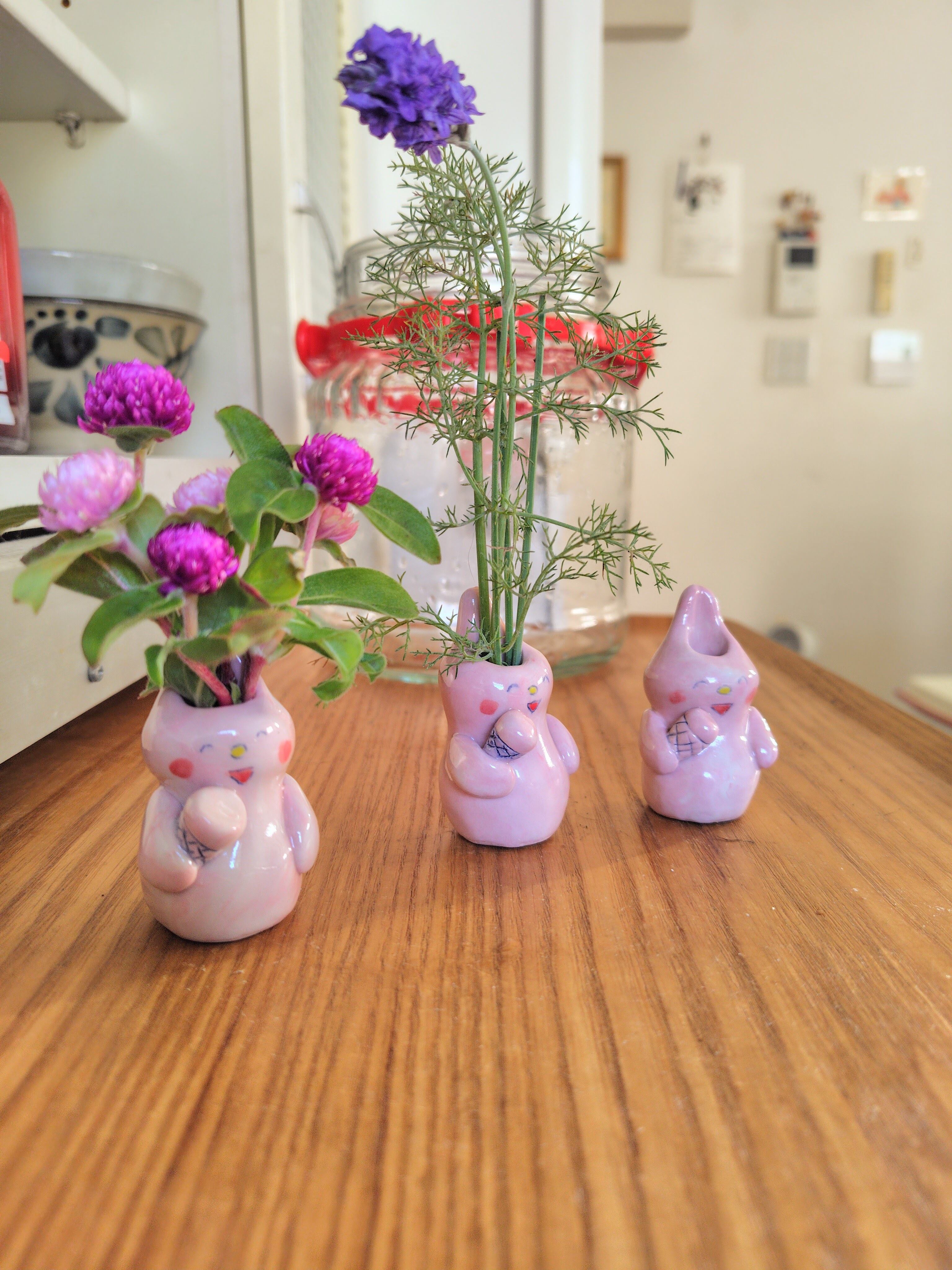 可愛らしいデザインは、日常のインテリアにも楽しい雰囲気をプラスし、温かな空間を演出します。小さな花瓶なので場所を取らず気軽に楽しめて、どんな場所でも印象的に存在する素敵な一品です。