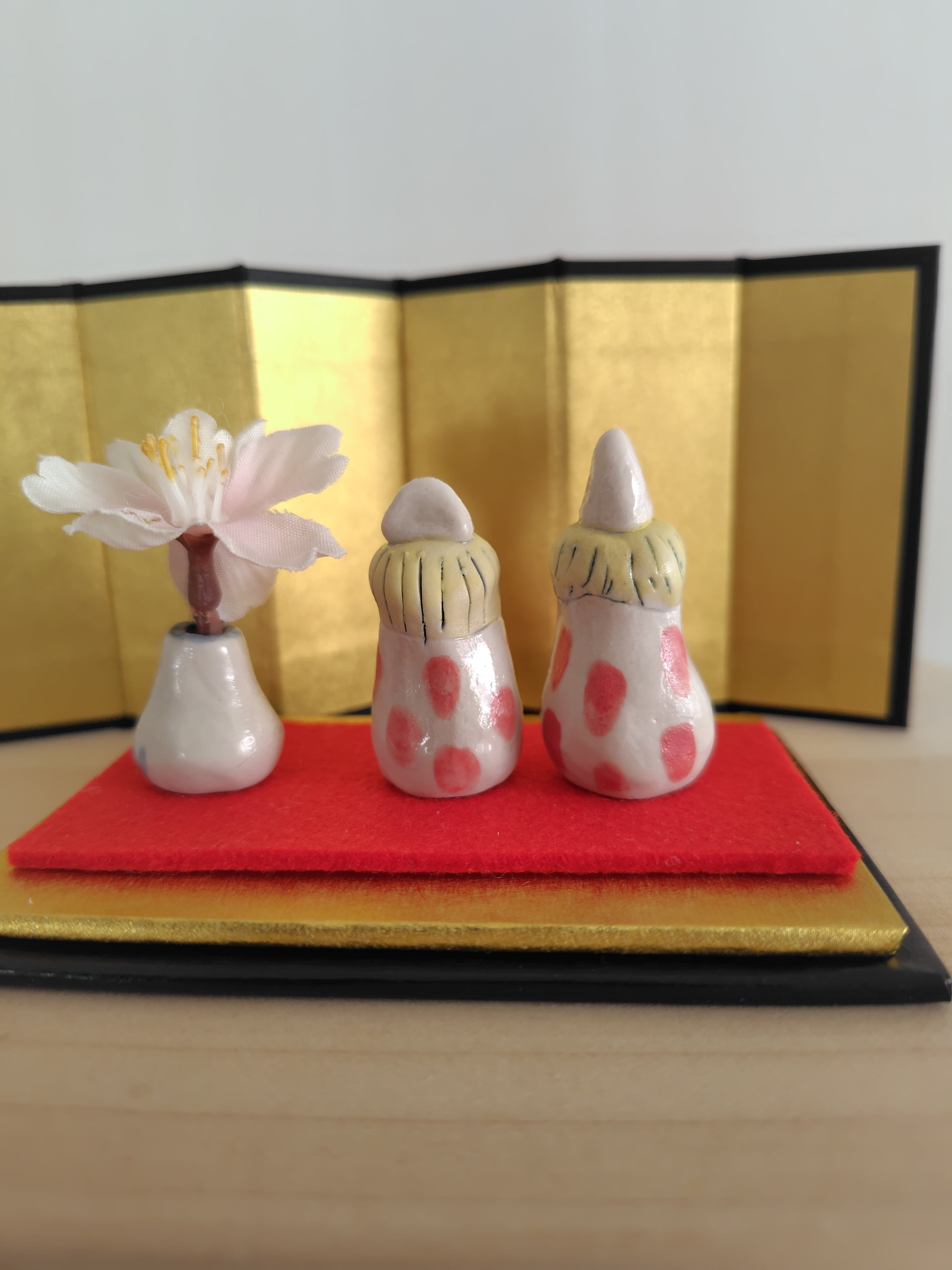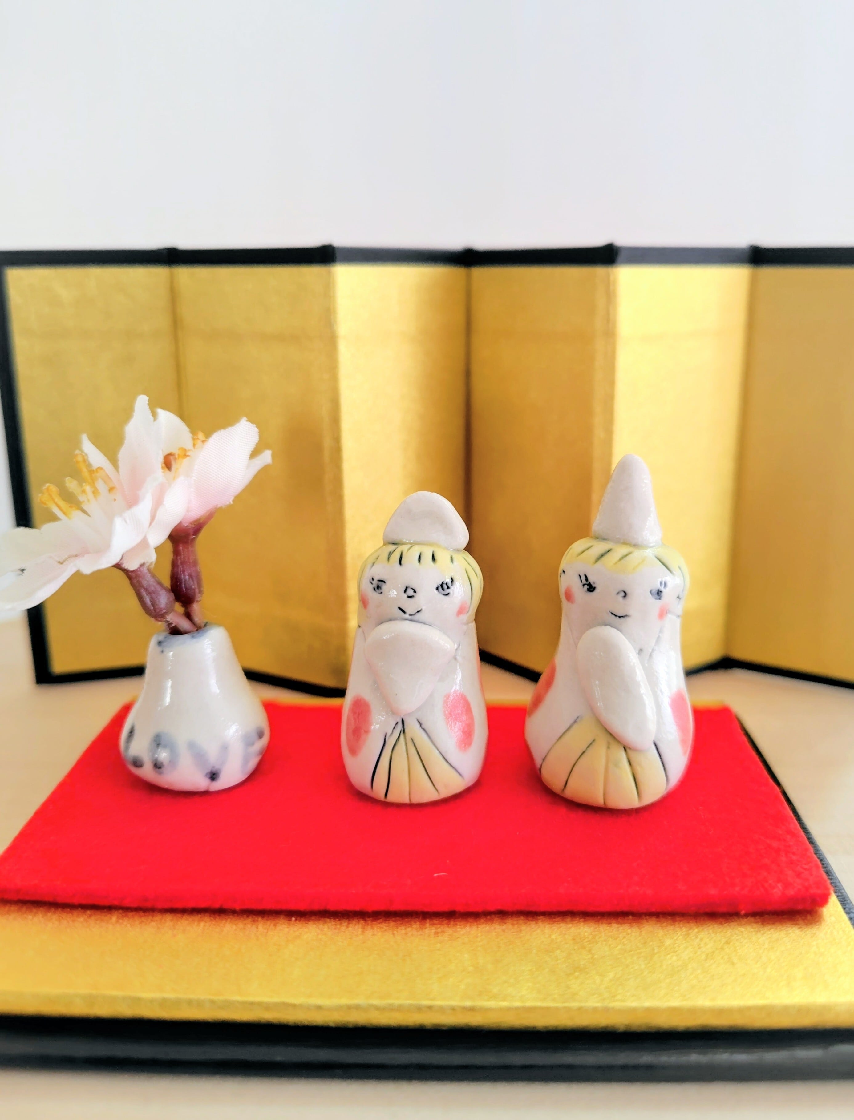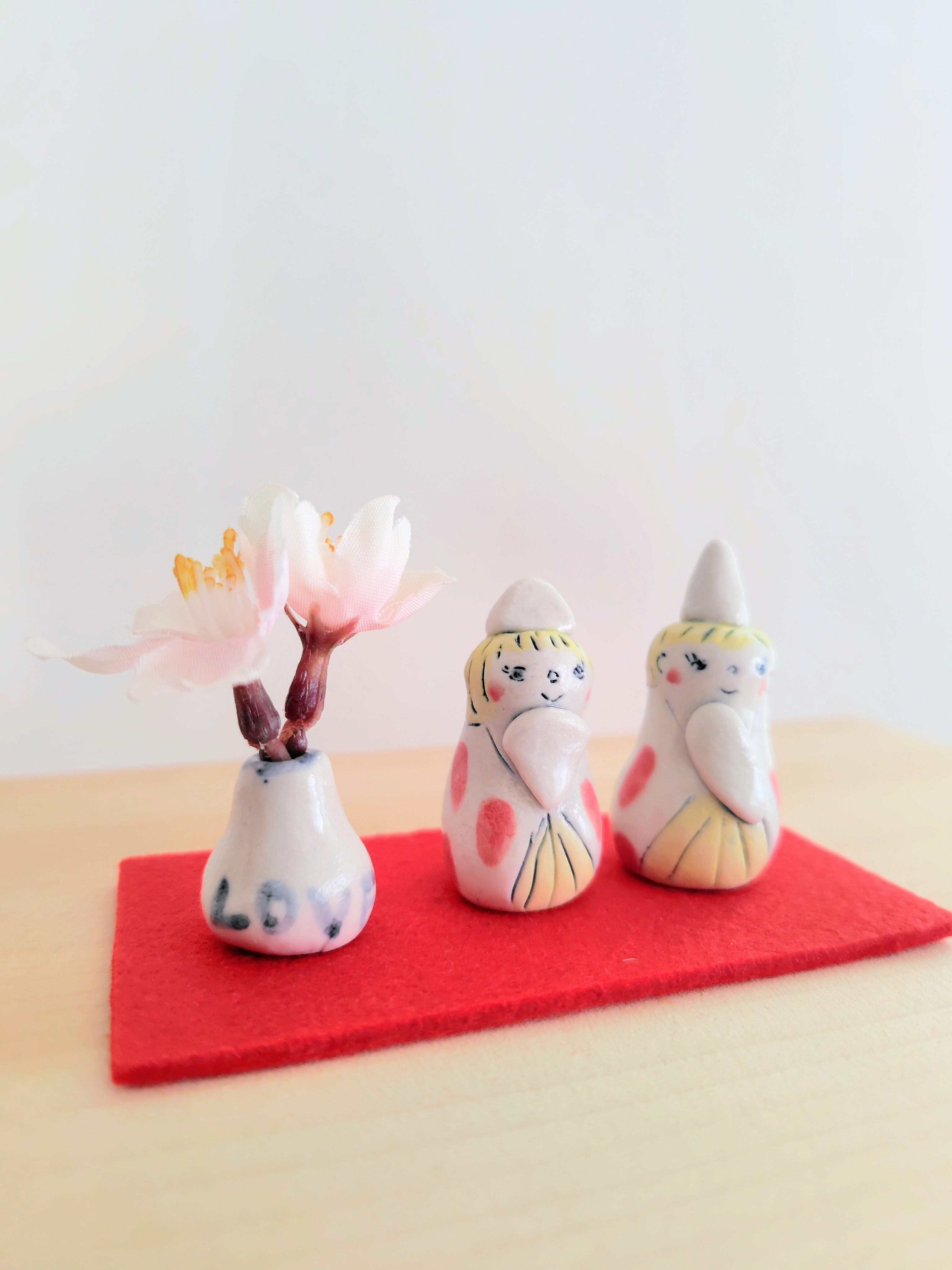 お雛様は、家庭の幸せと繁栄を願う大切な存在です。手しごとの、こちらの可愛らしいお雛様を飾ることで、陶芸の伝統の美しさを感じながら、心豊かな日々をお楽しみいただけます。