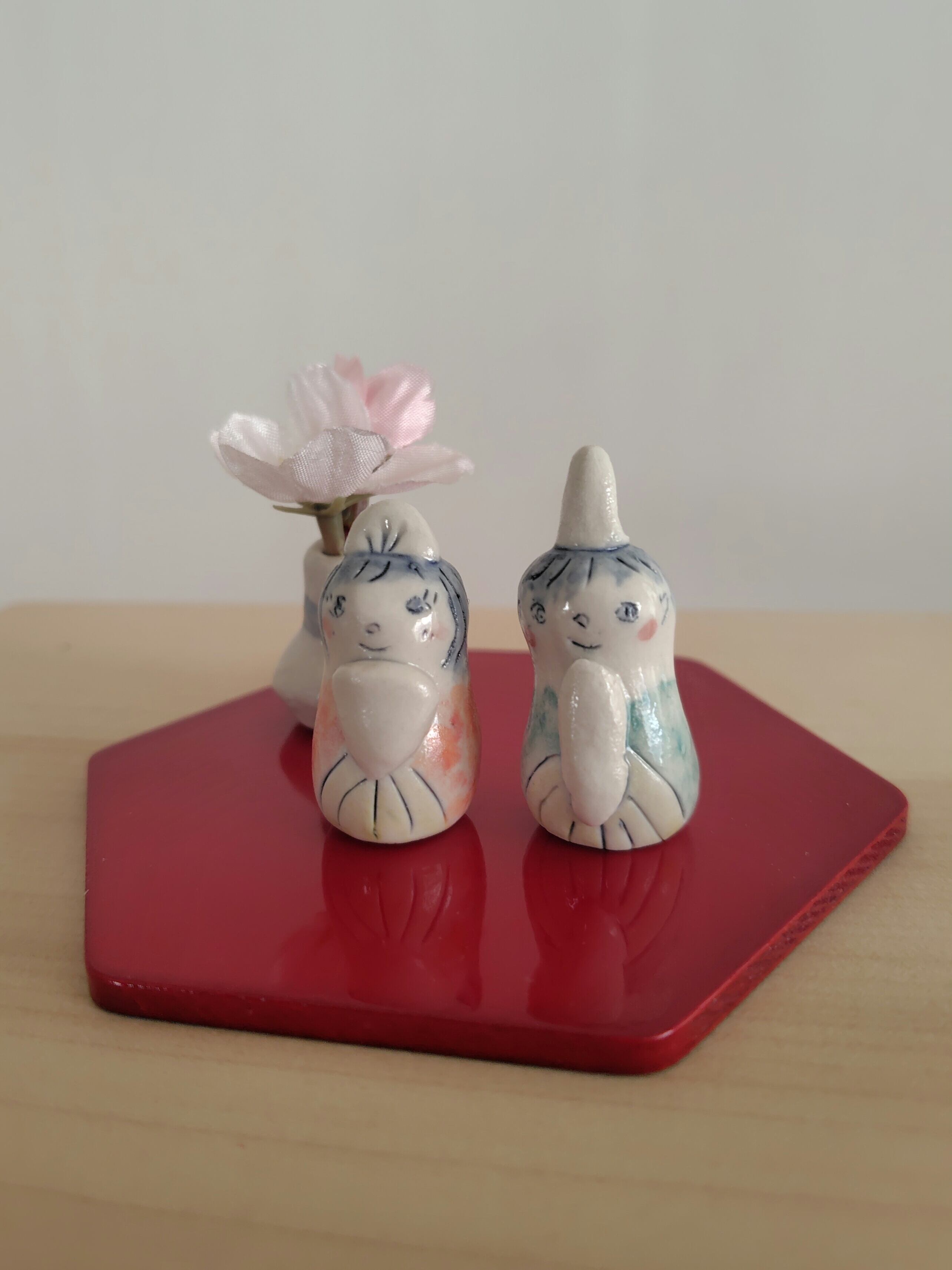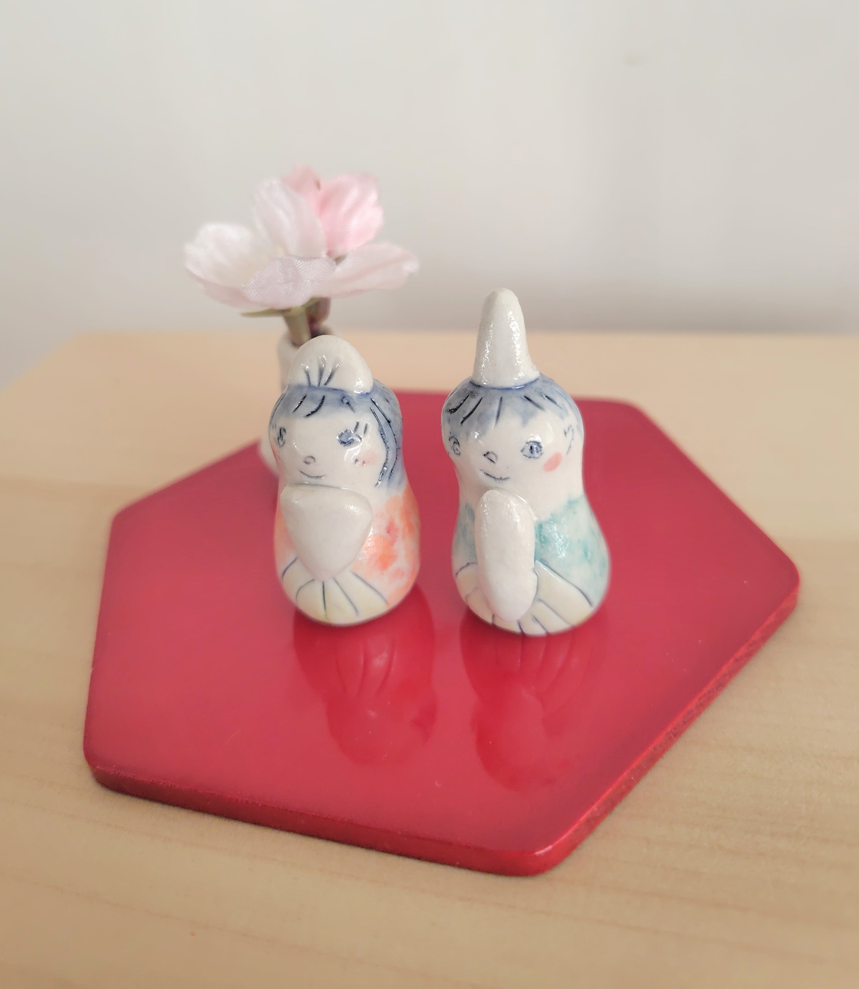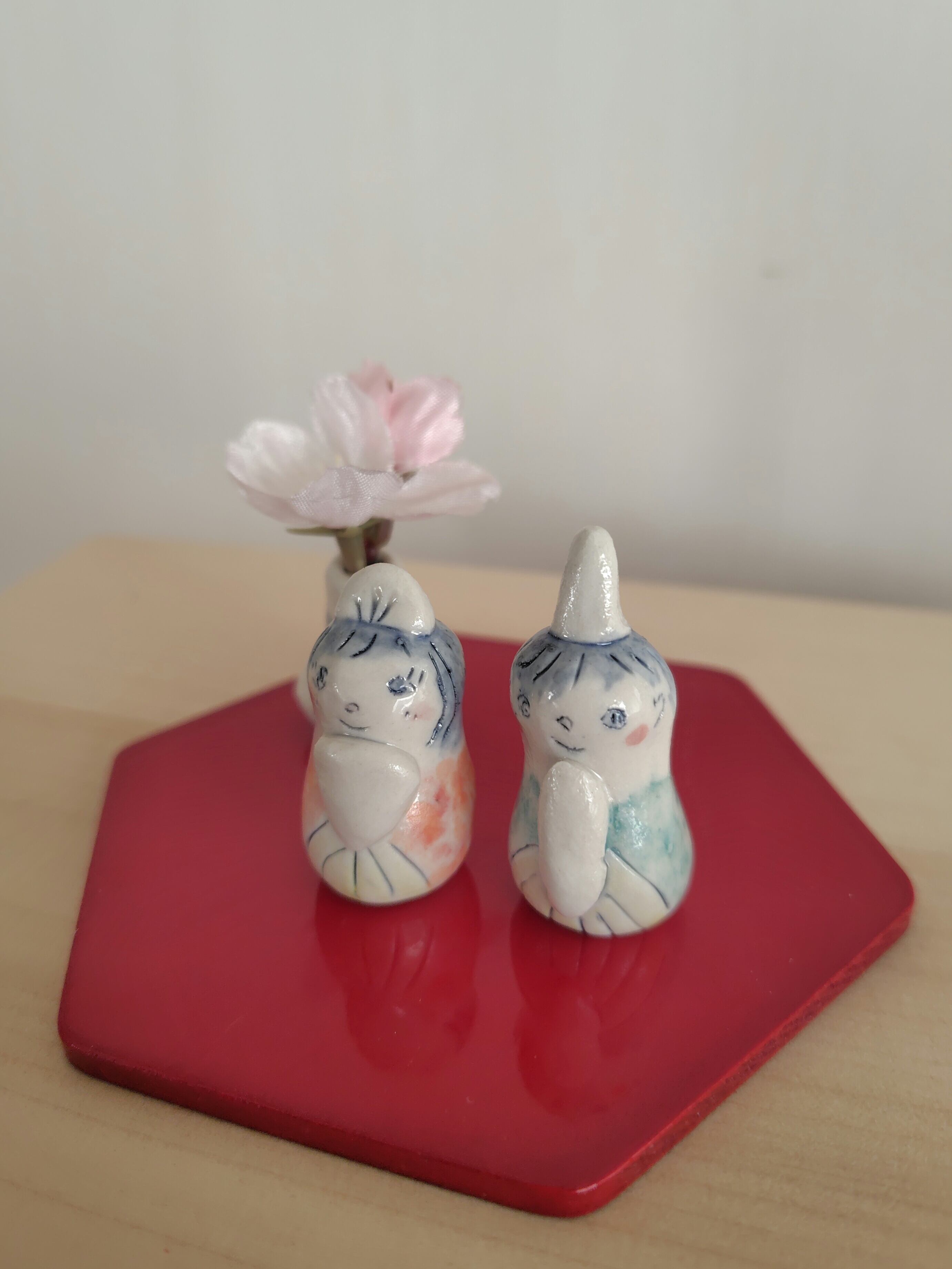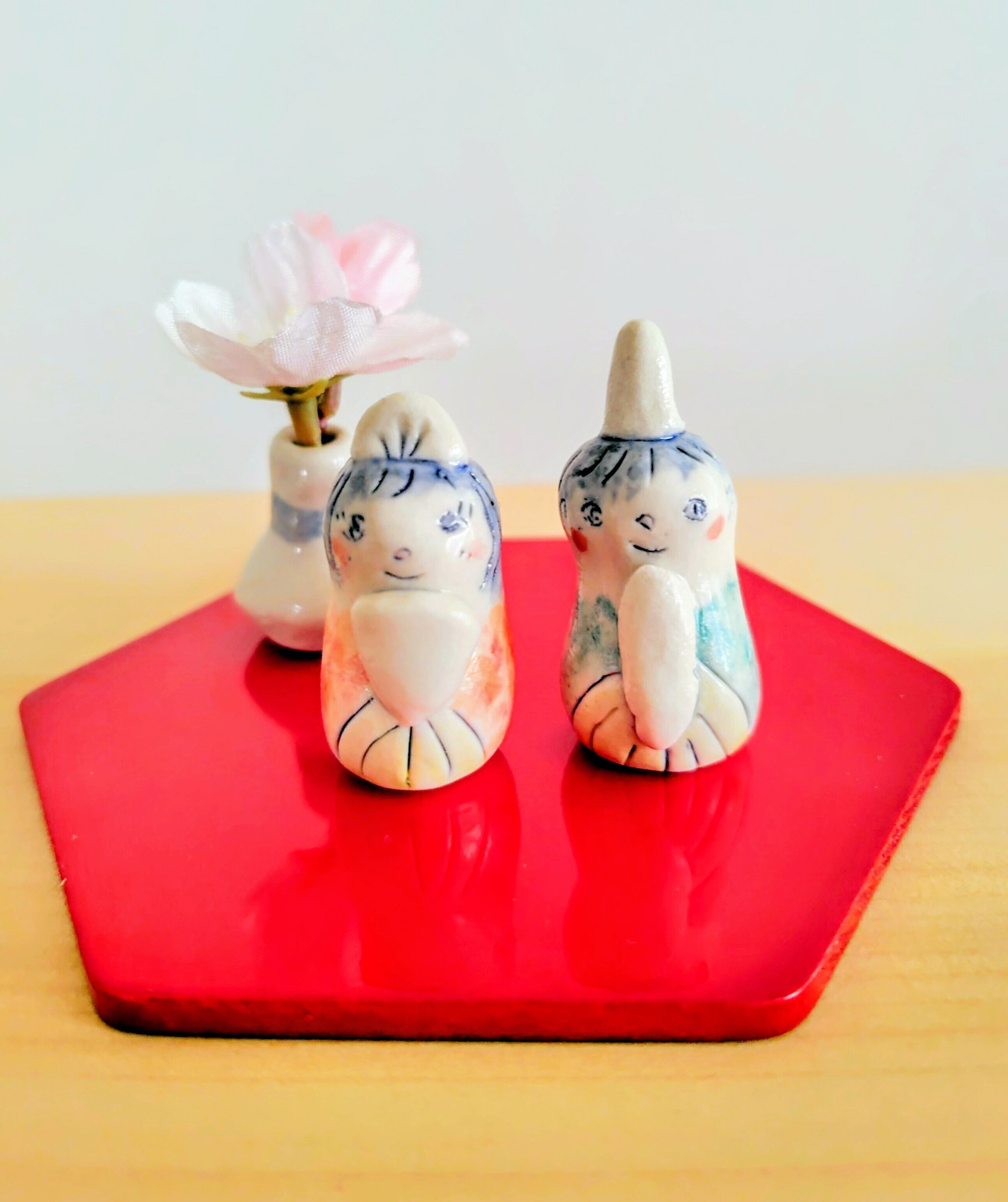 お雛様は、家庭の幸せと繁栄を願う大切な存在です。手しごとの、こちらの可愛らしいお雛様を飾ることで、陶芸の伝統の美しさを感じながら、心豊かな日々をお楽しみいただけます。