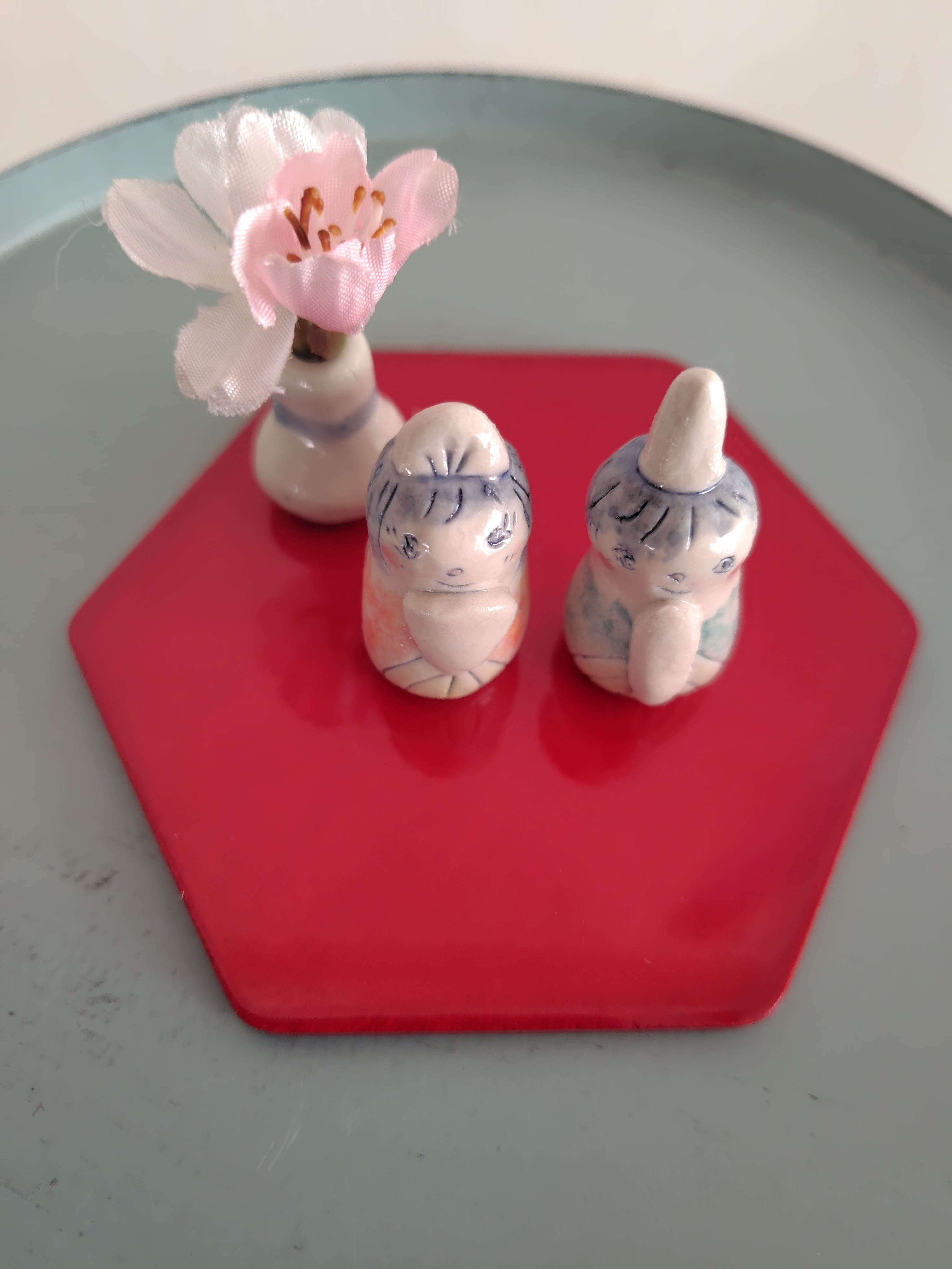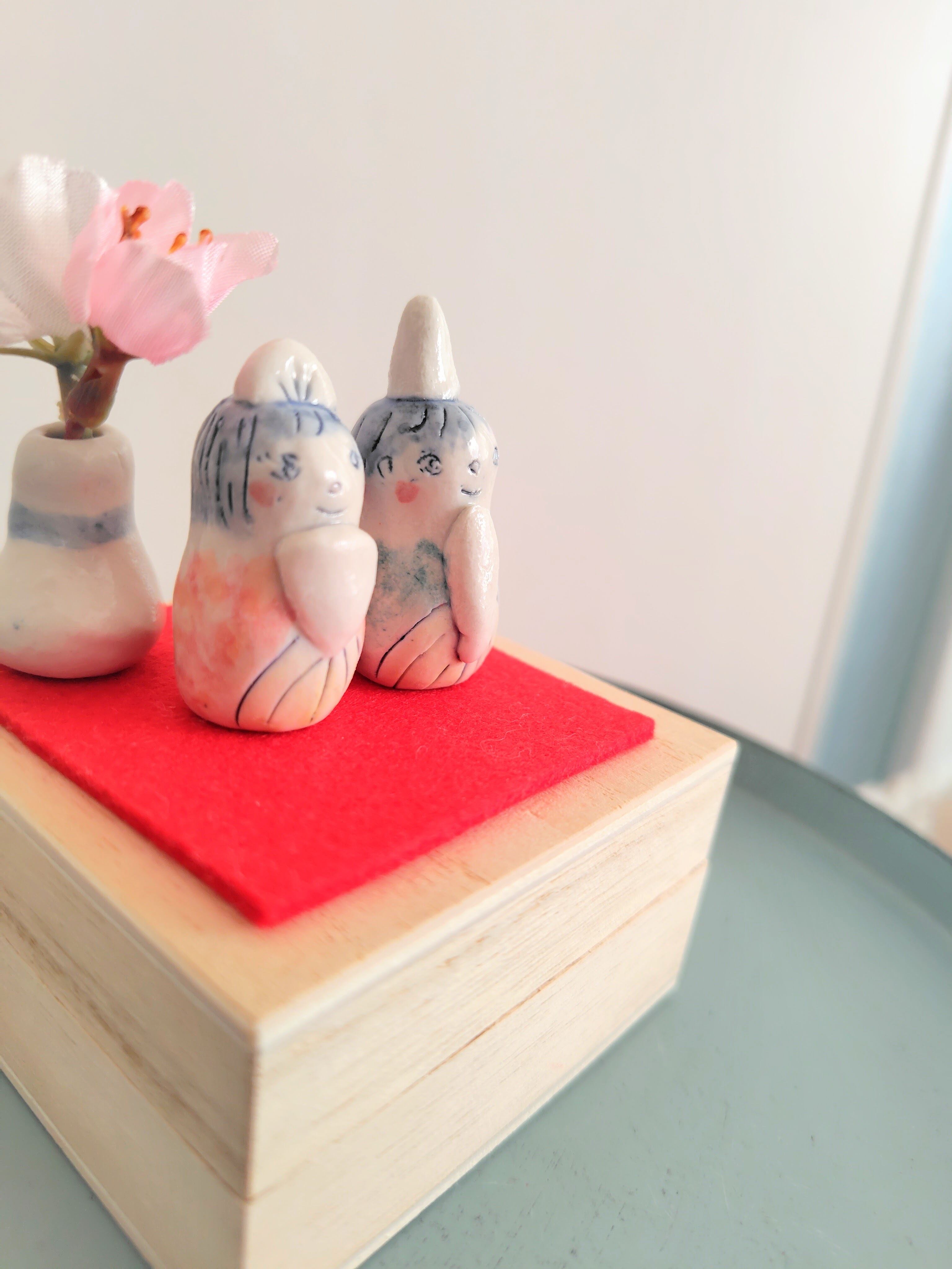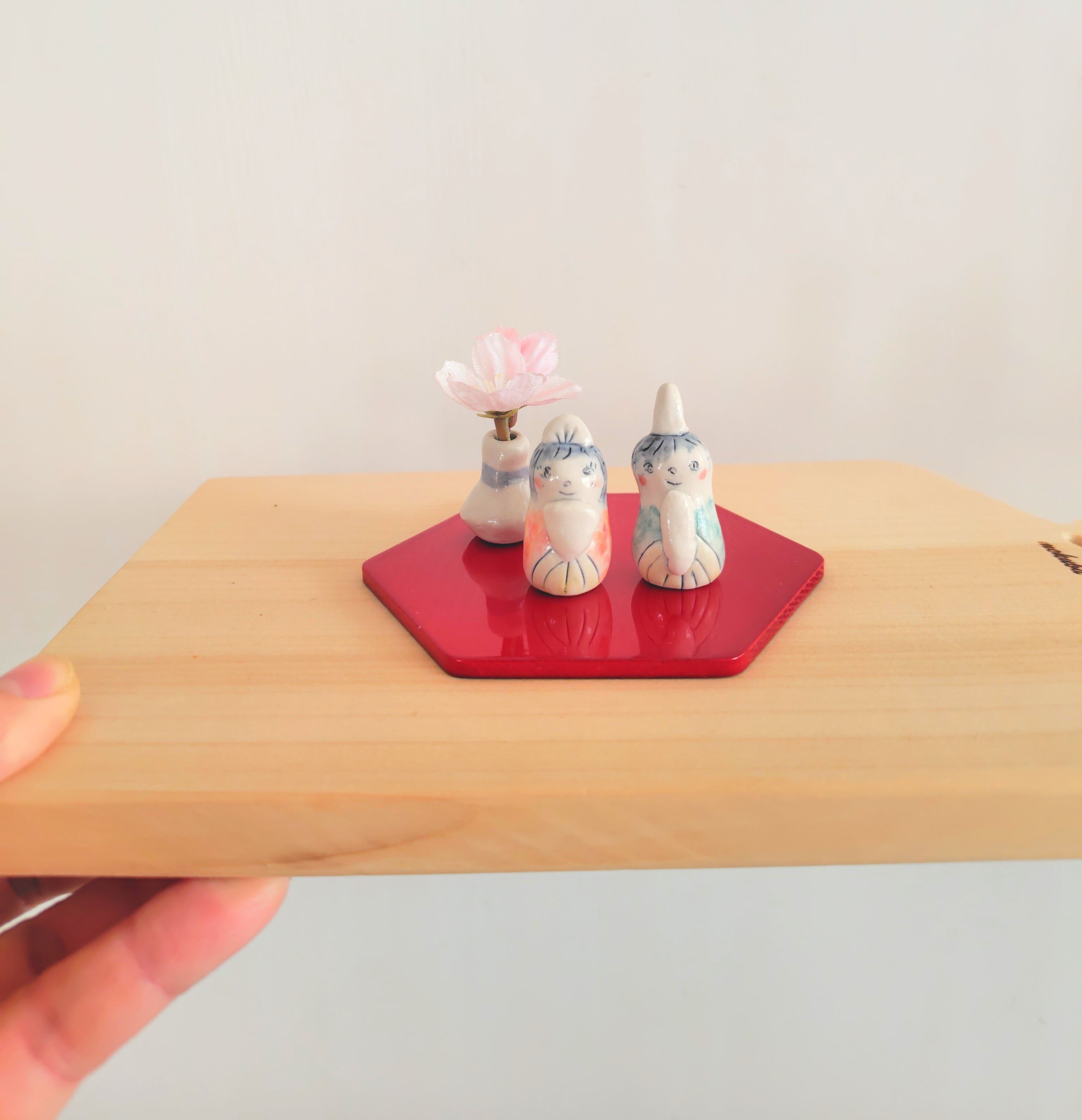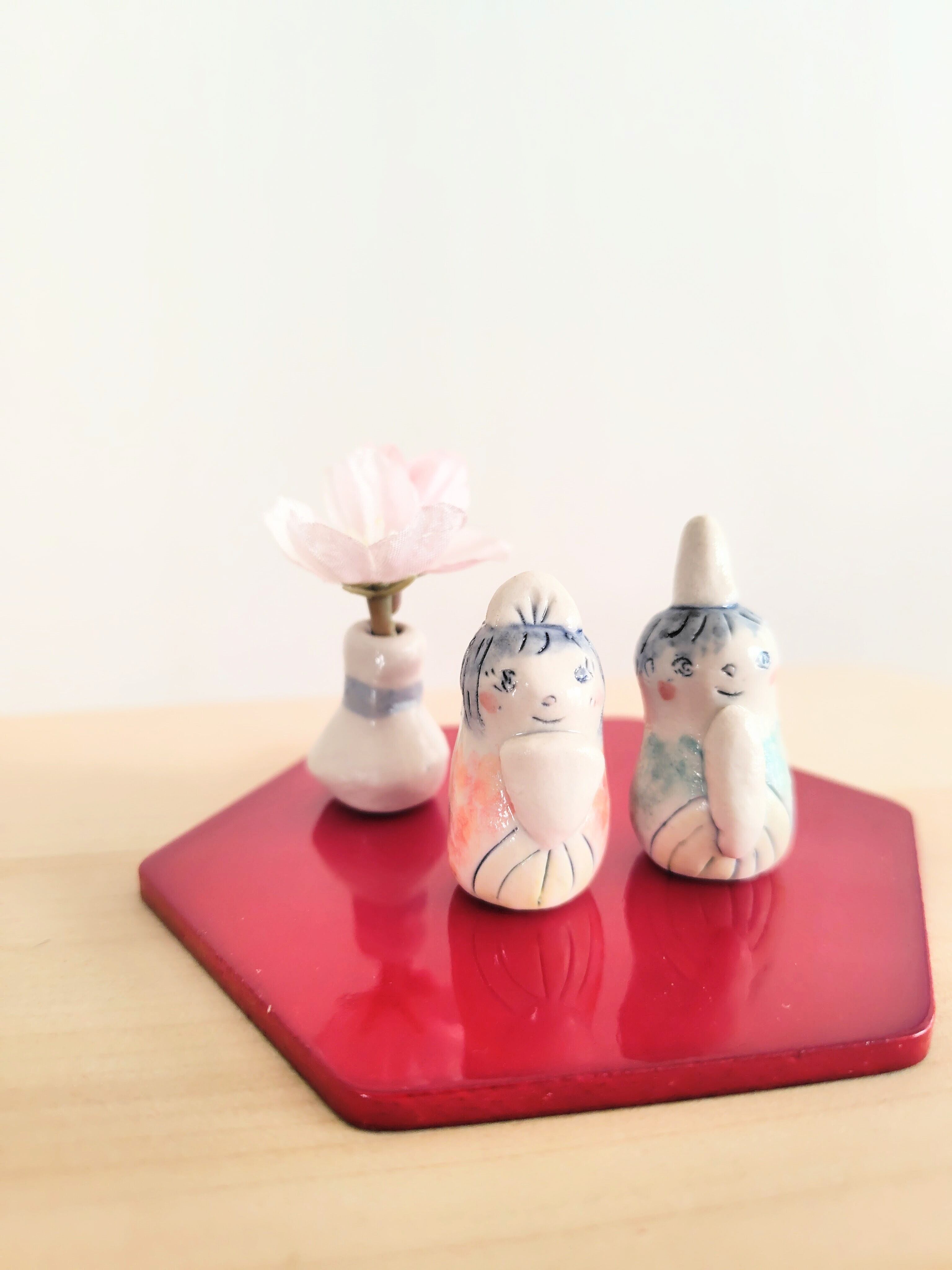 お雛様は、家庭の幸せと繁栄を願う大切な存在です。手しごとの、こちらの可愛らしいお雛様を飾ることで、陶芸の伝統の美しさを感じながら、心豊かな日々をお楽しみいただけます。