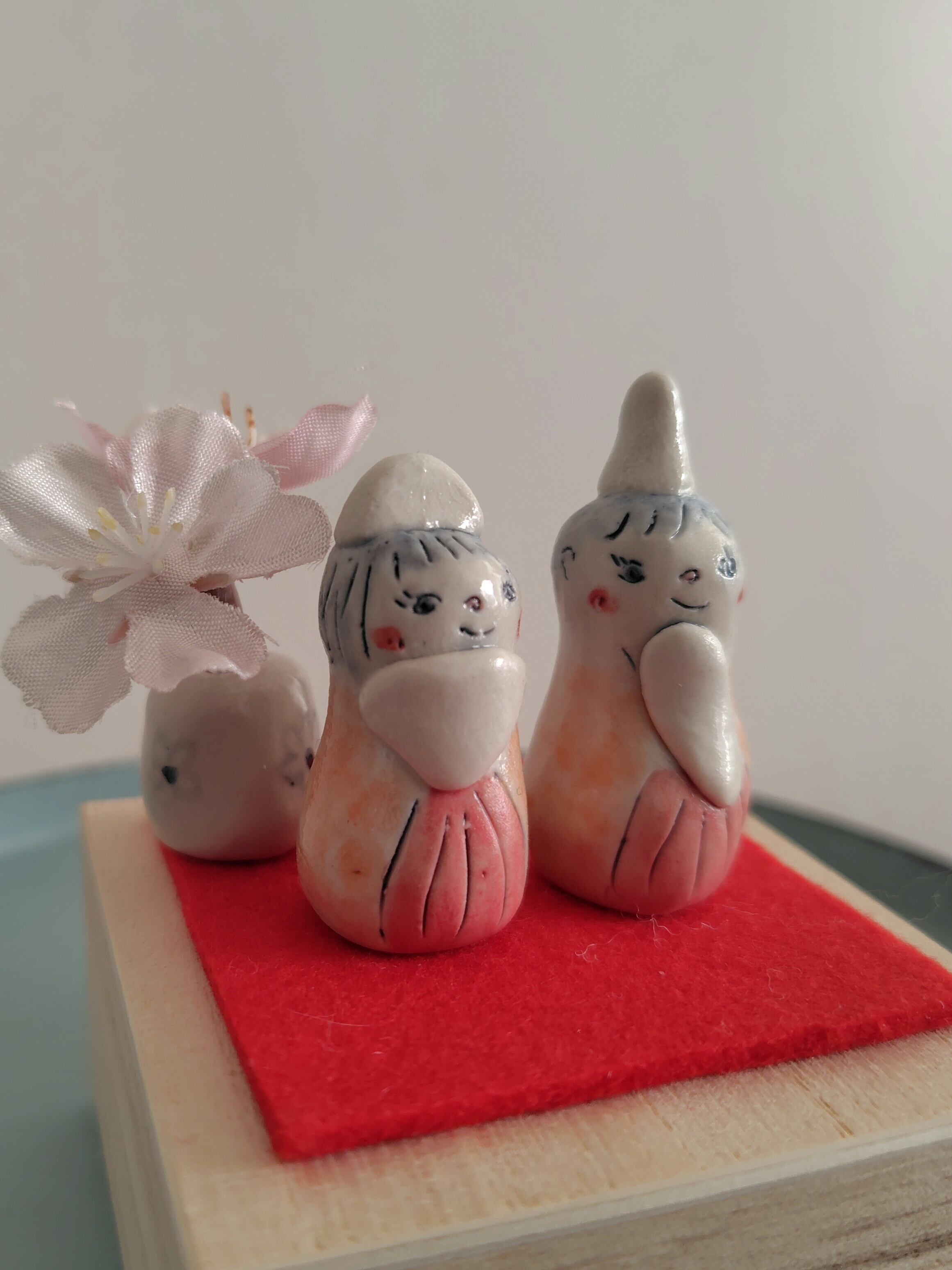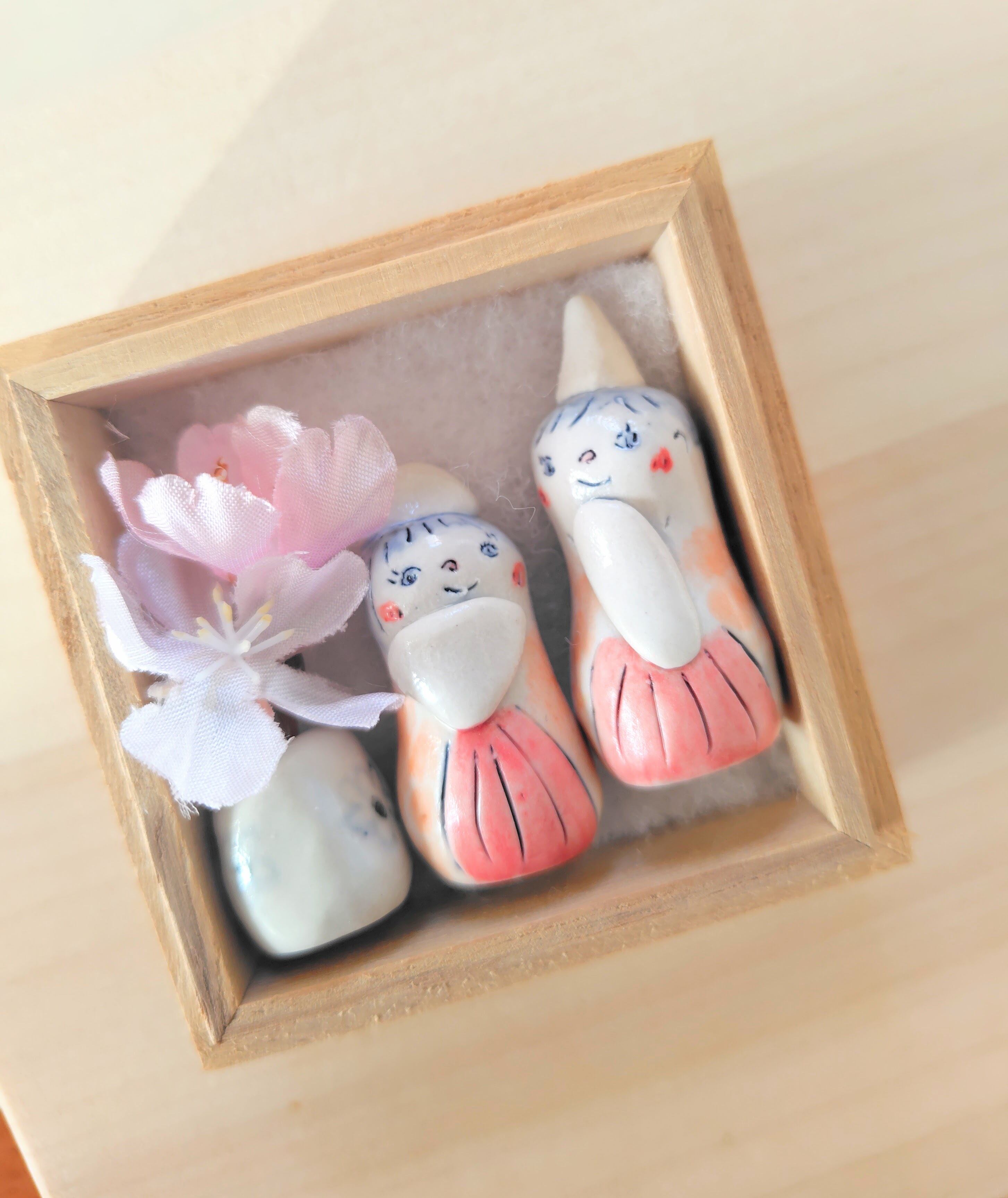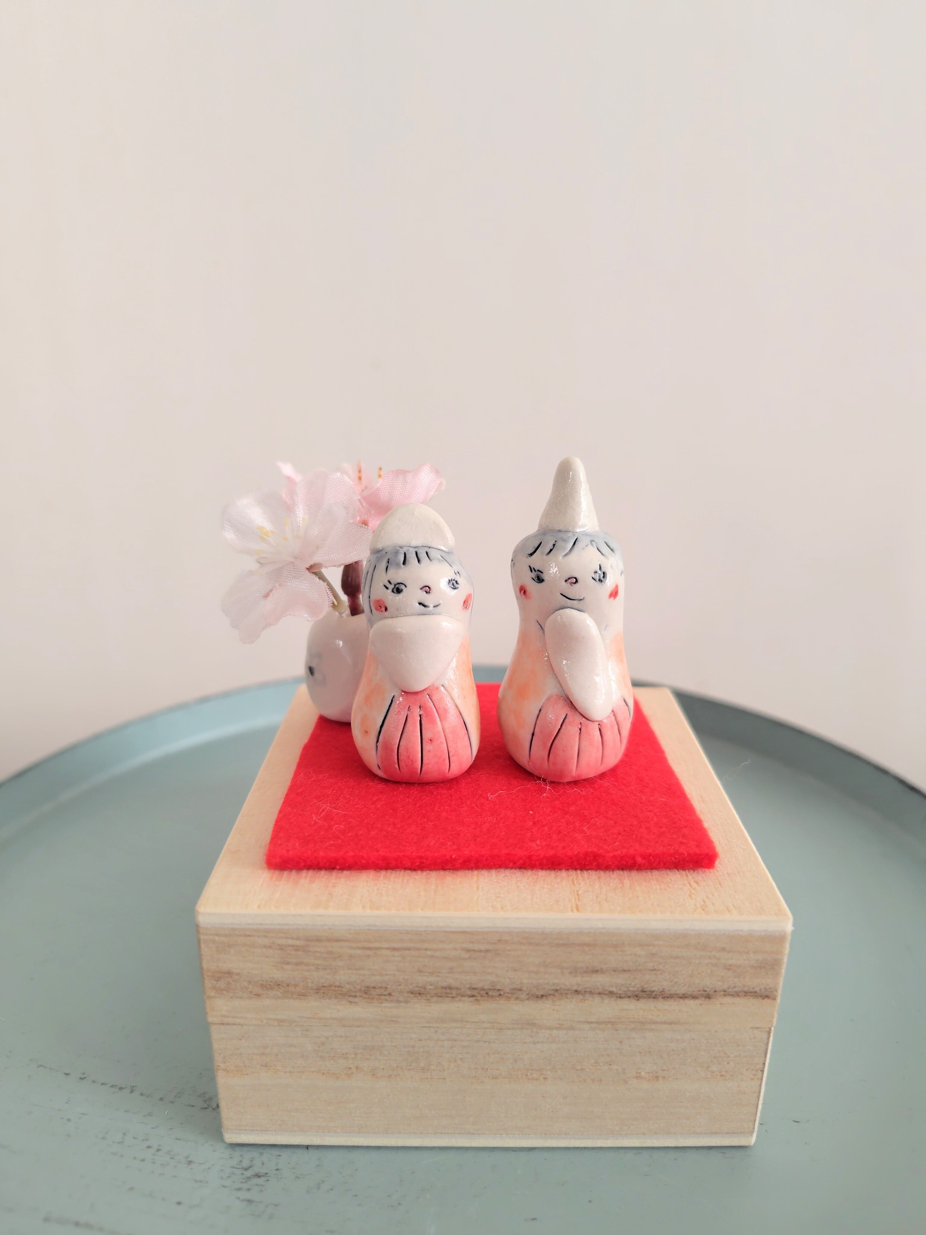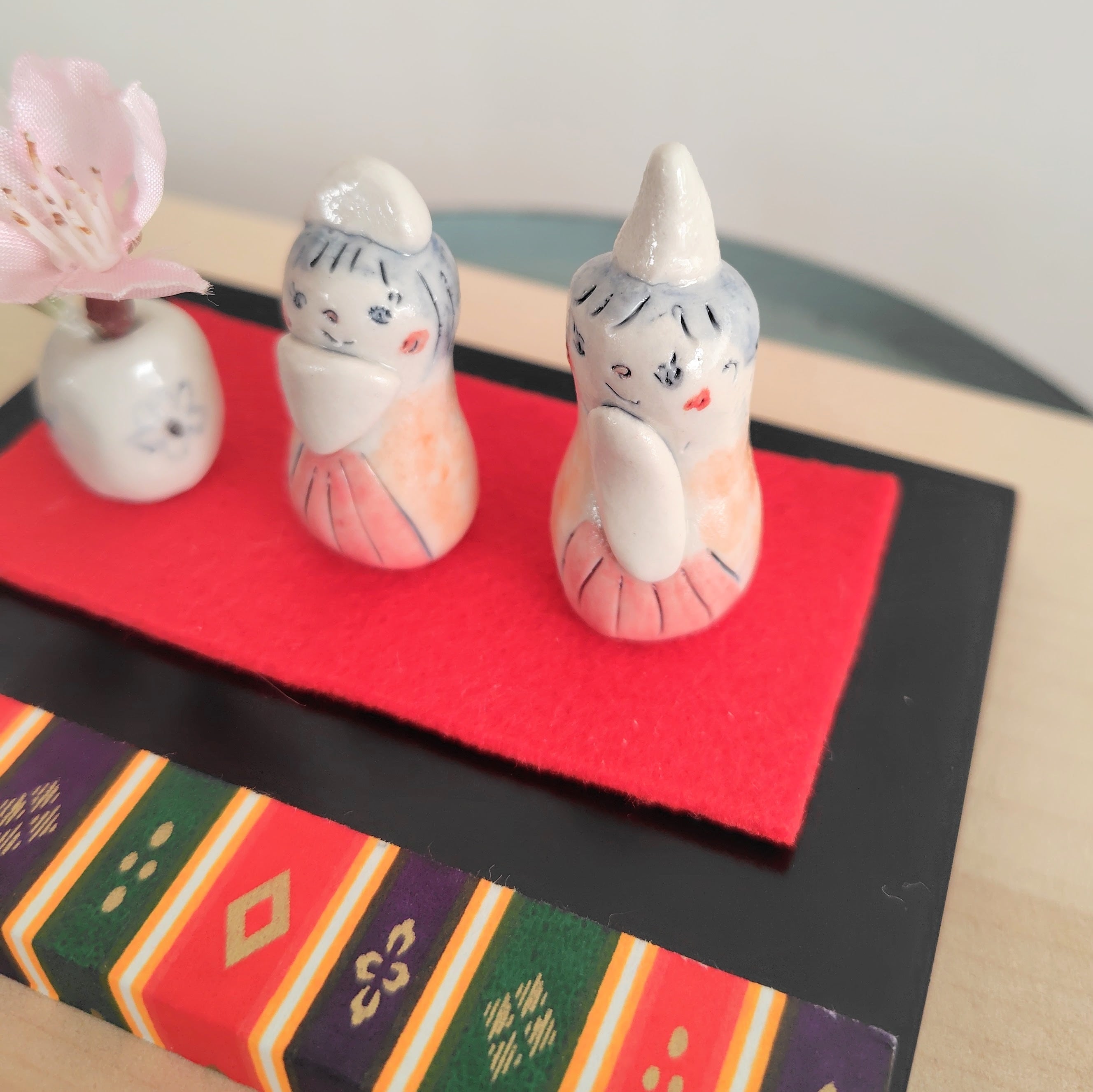 お雛様は、家庭の幸せと繁栄を願う大切な存在です。手しごとの、こちらの可愛らしいお雛様を飾ることで、陶芸の伝統の美しさを感じながら、心豊かな日々をお楽しみいただけます。