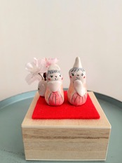 繊細な陶磁器から生み出されたお雛様は、佐々木ヨーコが一つ一つ丁寧に手掛けた作品です。形や色合いはそれぞれ異なり、個性豊かな一点ものとなっています。なかなか出会えない、特別な存在感を持つお雛様です。