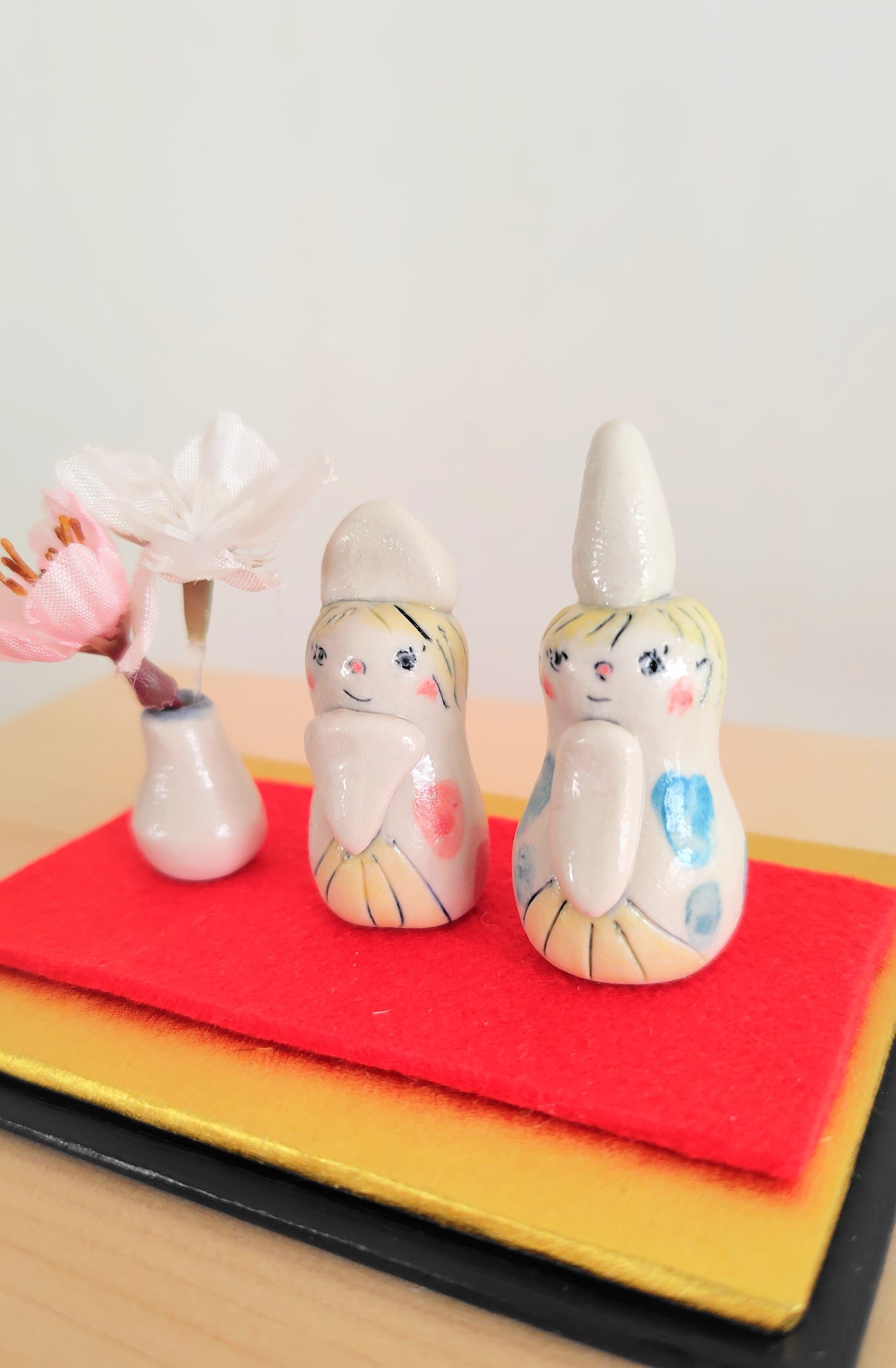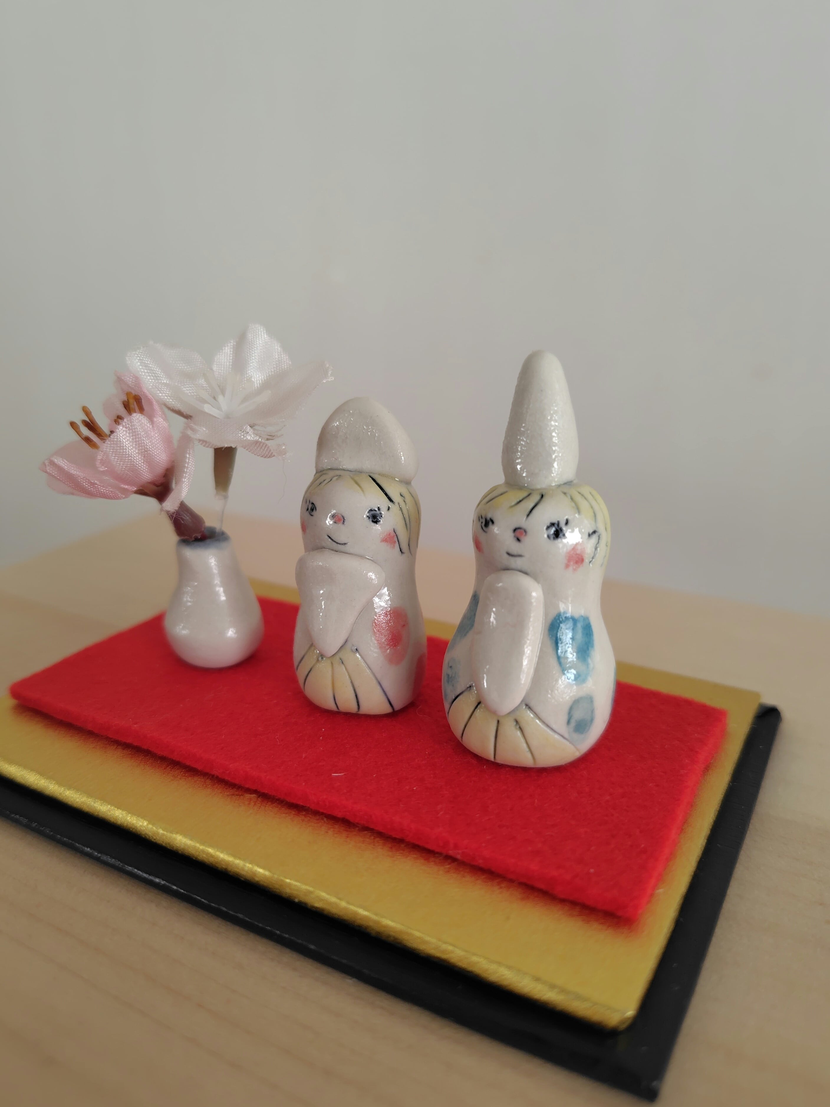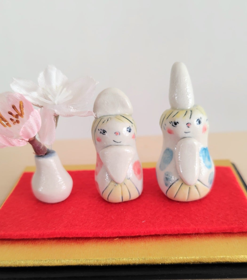 お雛様は、家庭の幸せと繁栄を願う大切な存在です。手しごとの、こちらの可愛らしいお雛様を飾ることで、陶芸の伝統の美しさを感じながら、心豊かな日々をお楽しみいただけます。