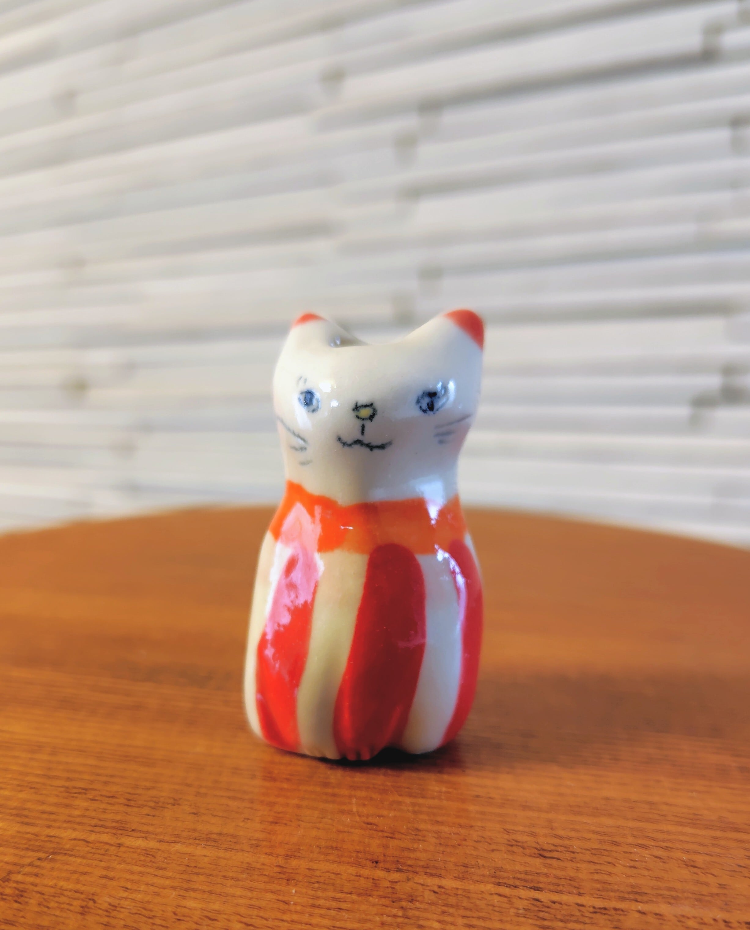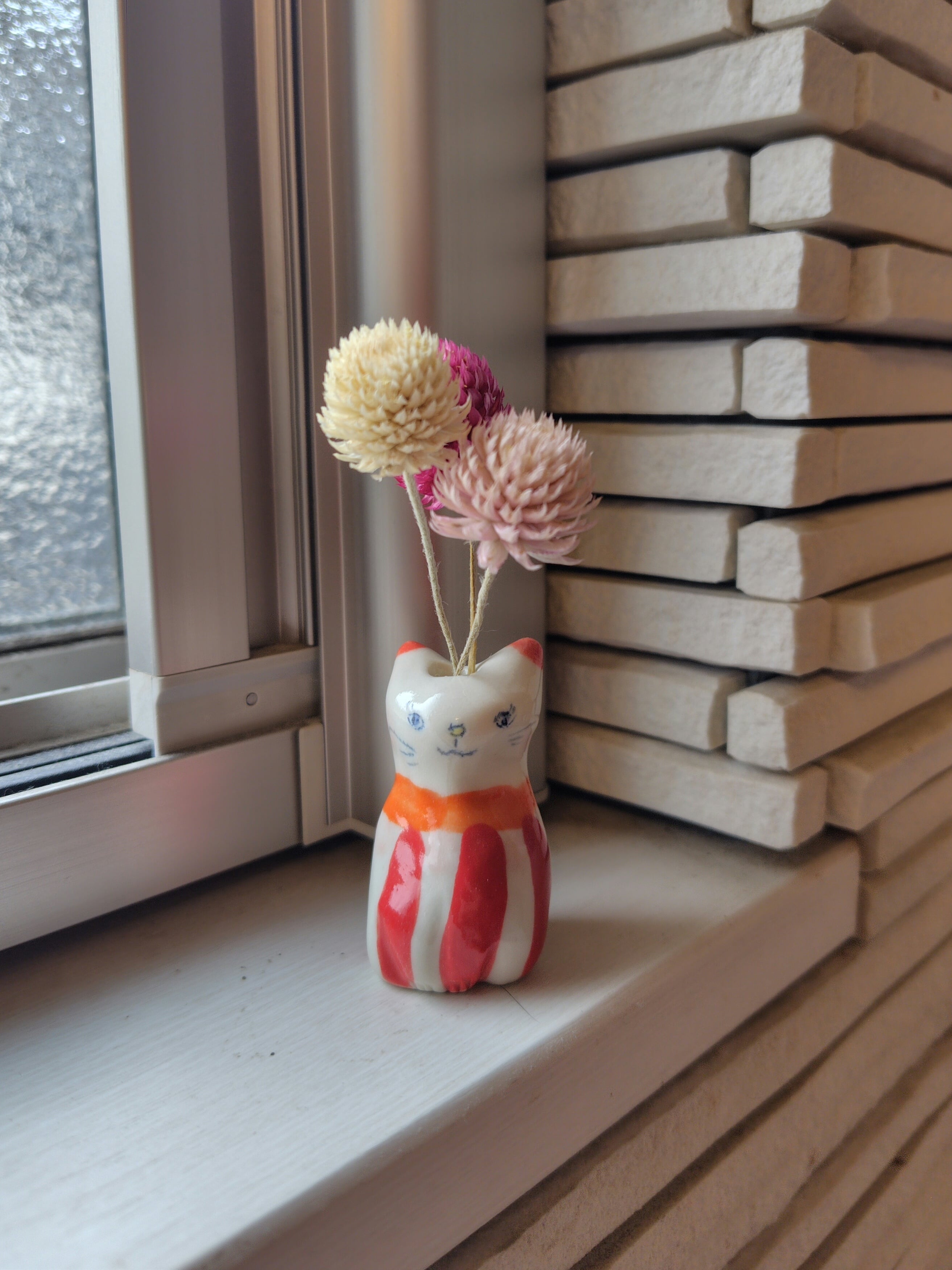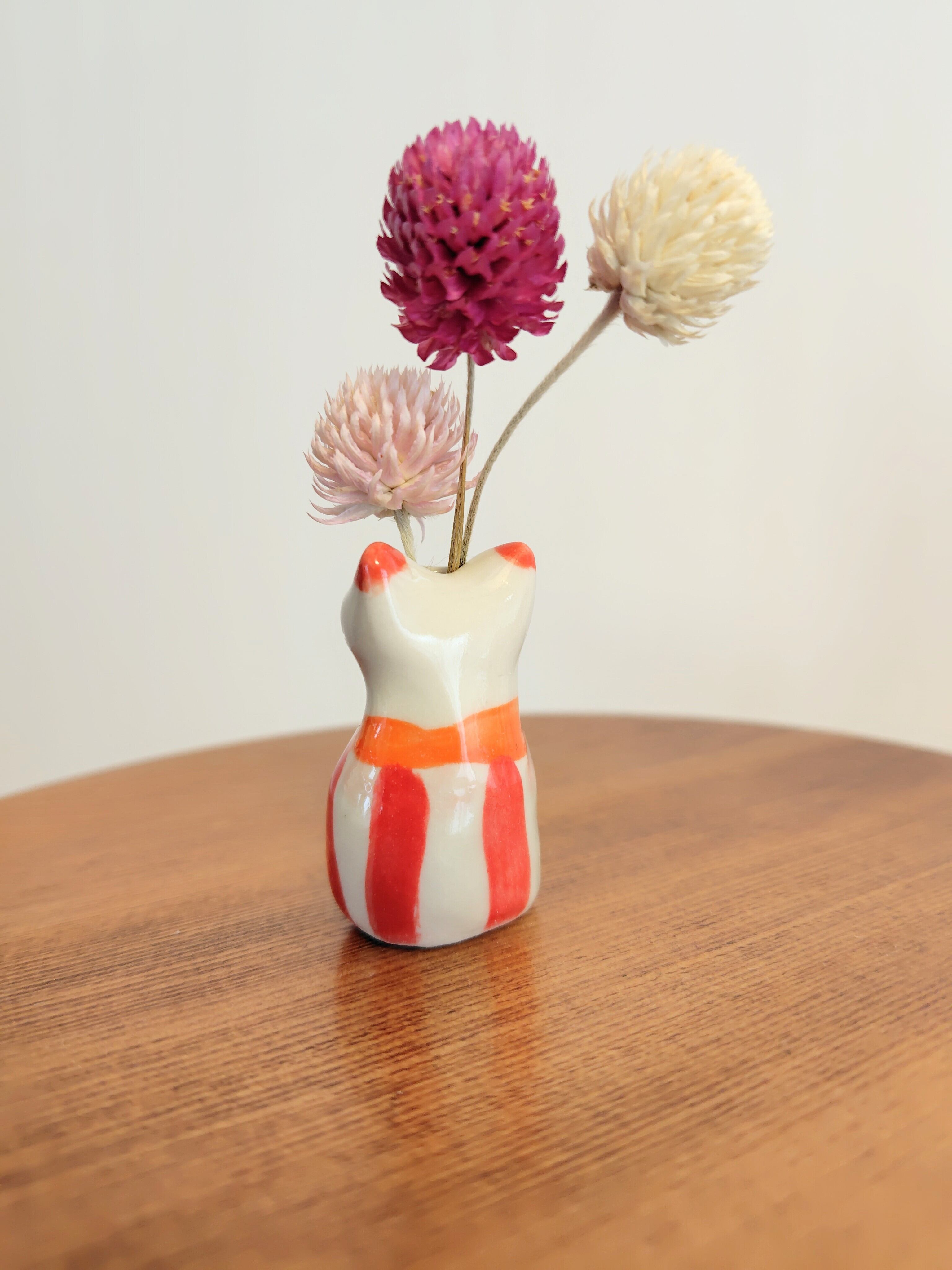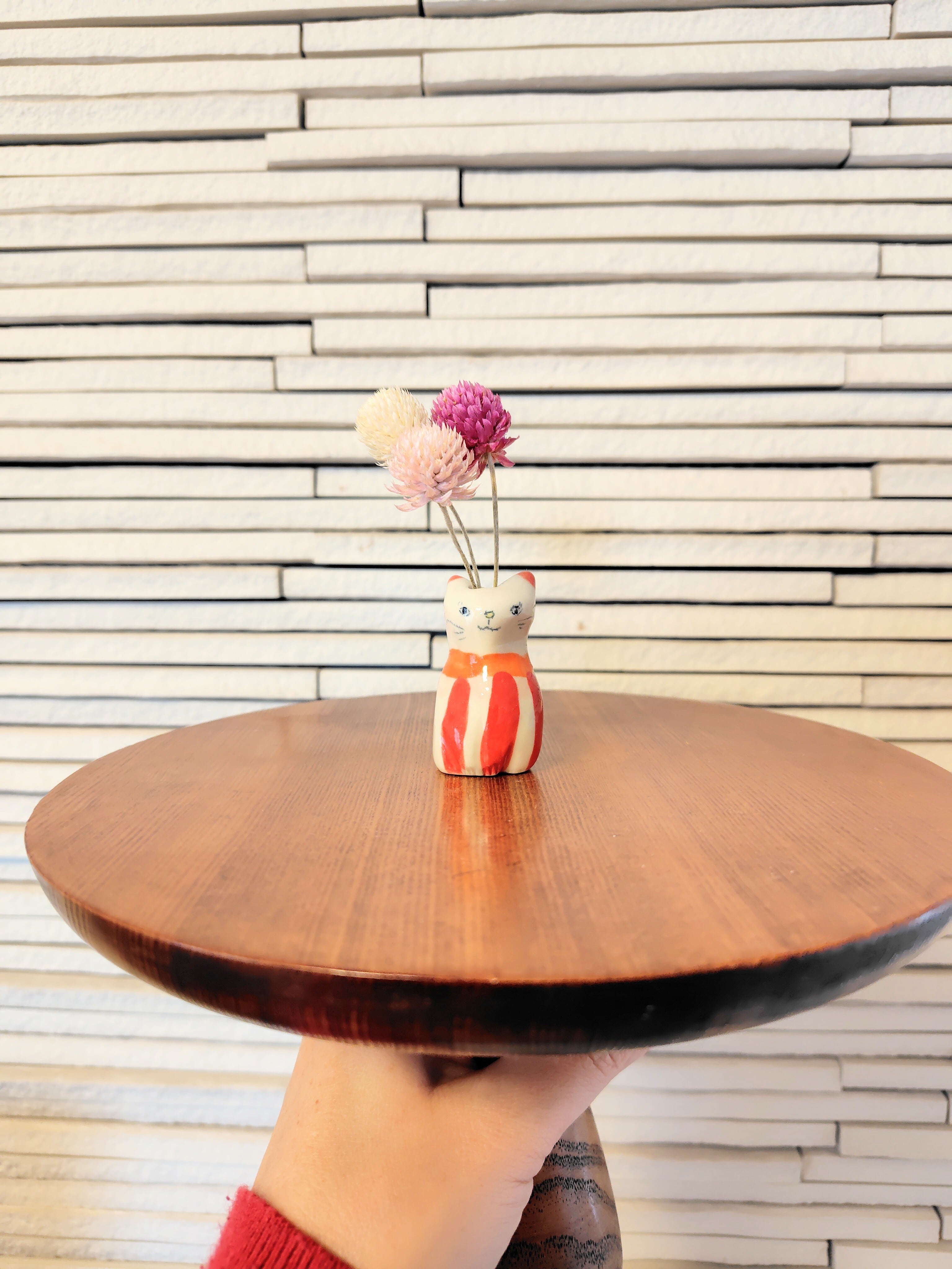高さ約5センチセンチという絶妙なサイズ感で、ドライフラワーや、生花をお水を入れて飾る事もできます。お香立てとして使ったり、縁起物のねこちゃんのお髭入れとして使って楽しむこともできて、使い方は自由^_^ 可愛らしい姿を見るたびに、心が和むことでしょう!