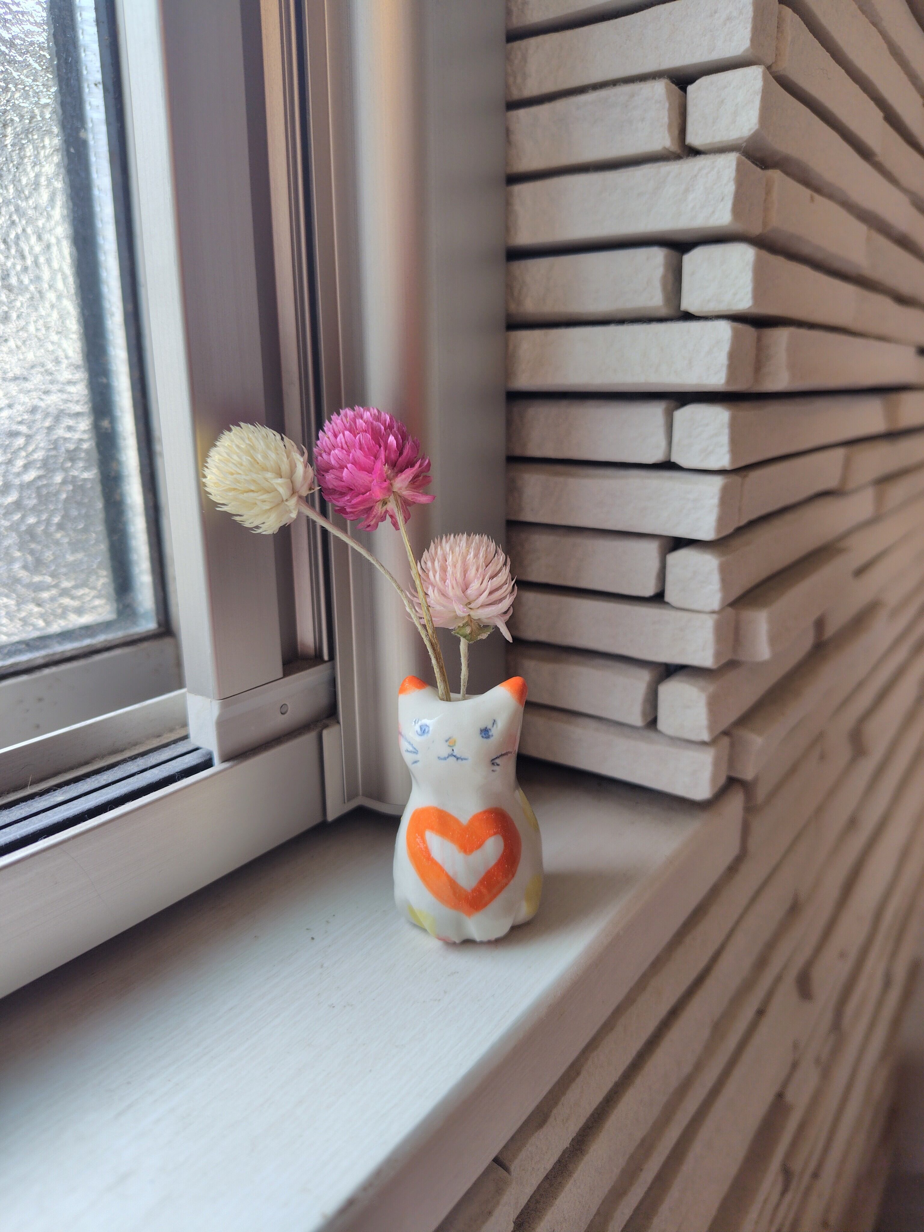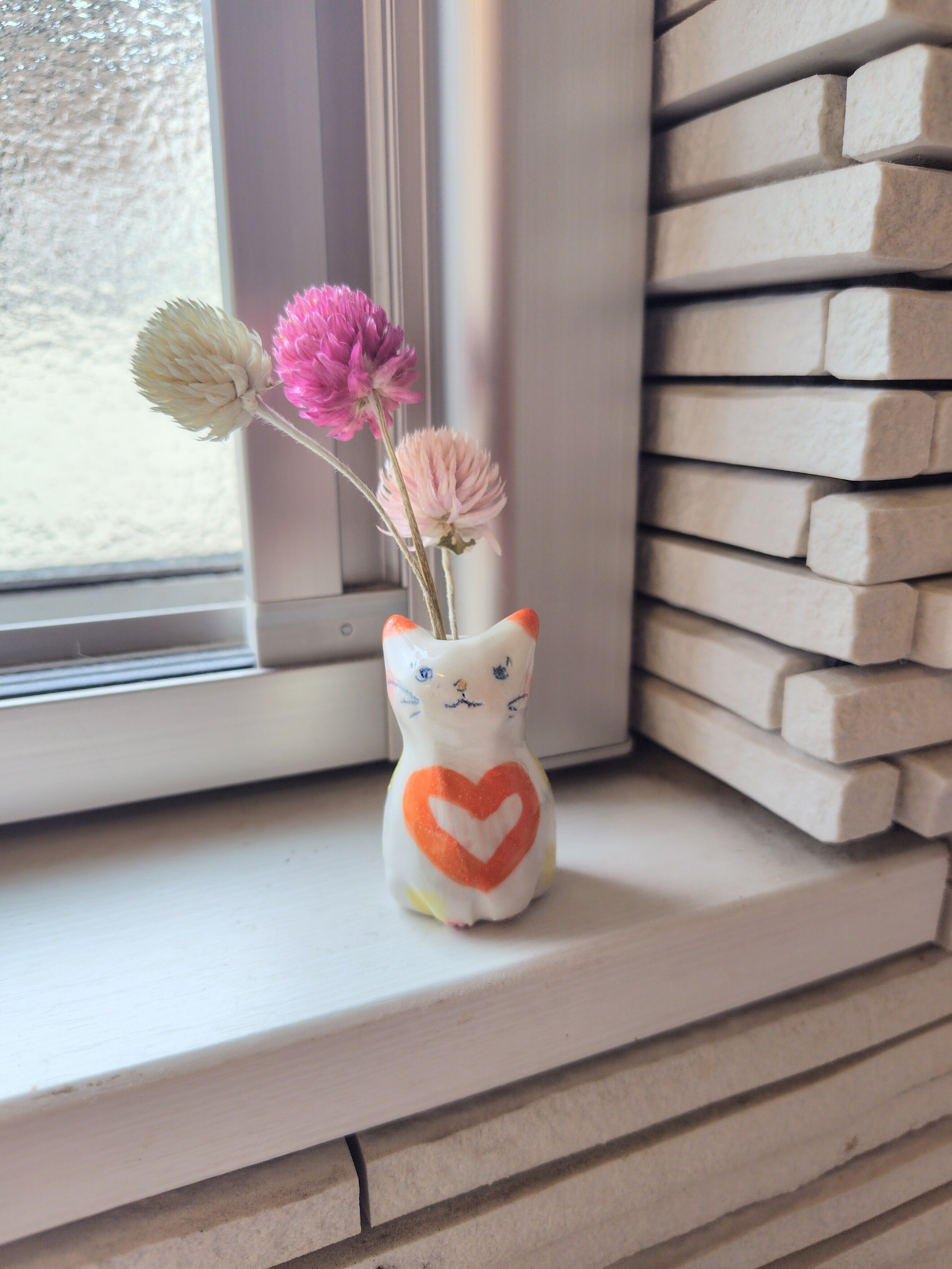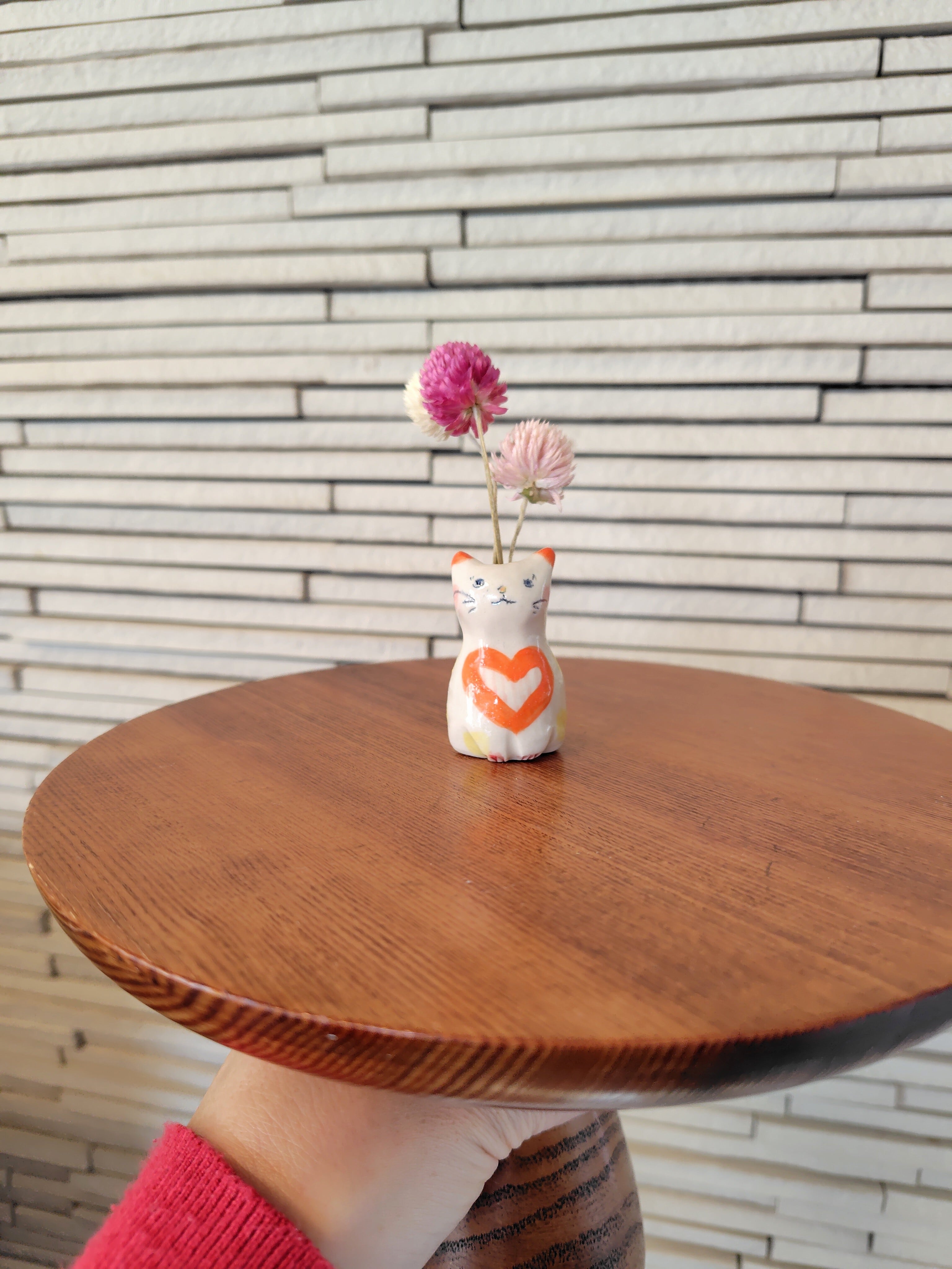 高さ約5センチセンチという絶妙なサイズ感で、ドライフラワーや、生花をお水を入れて飾る事もできます。お香立てとして使ったり、縁起物のねこちゃんのお髭入れとして使って楽しむこともできて、使い方は自由^_^ 可愛らしい姿を見るたびに、心が和むことでしょう!