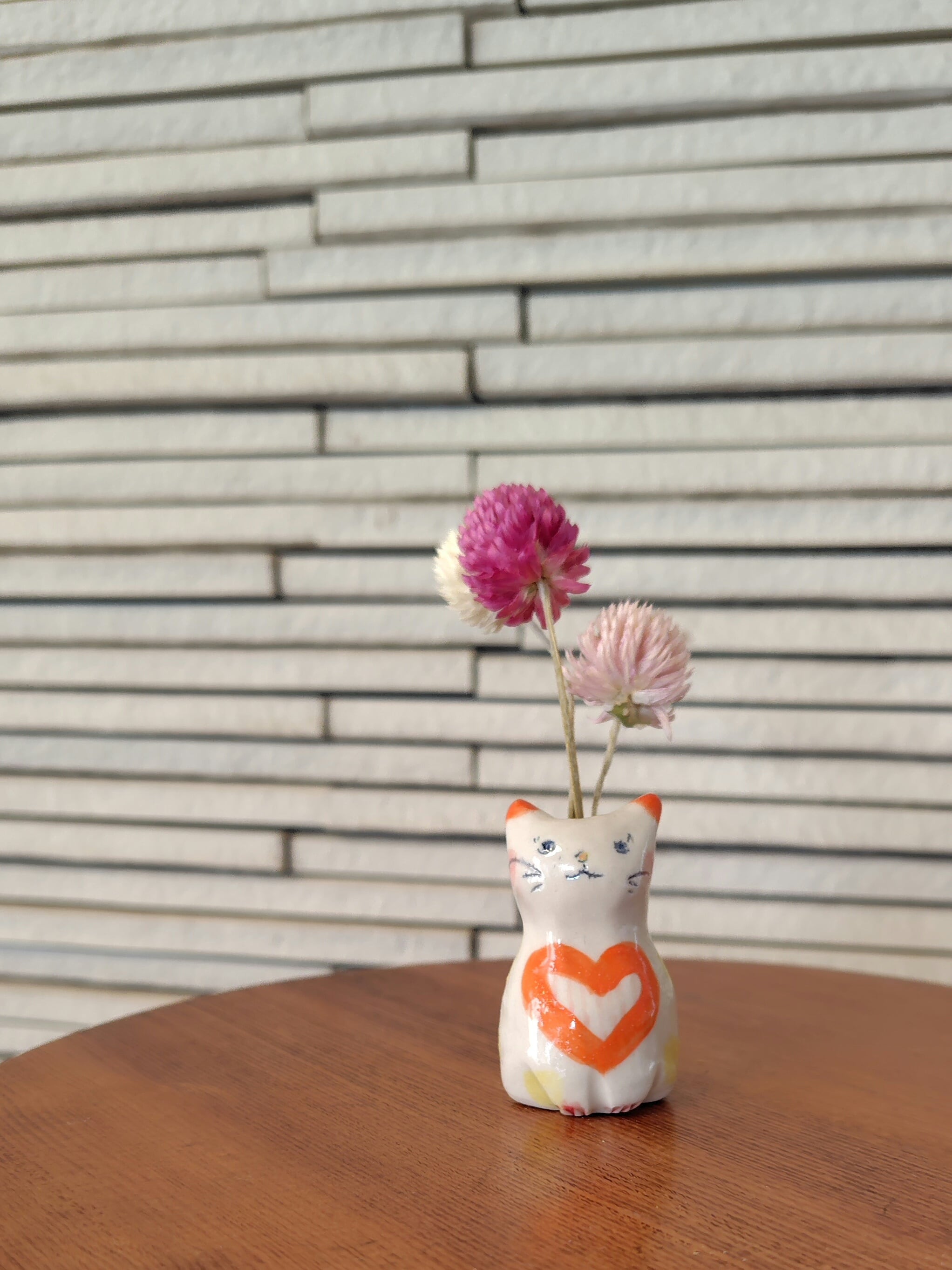 ねこ花びん⑦ ドライフラワー付き