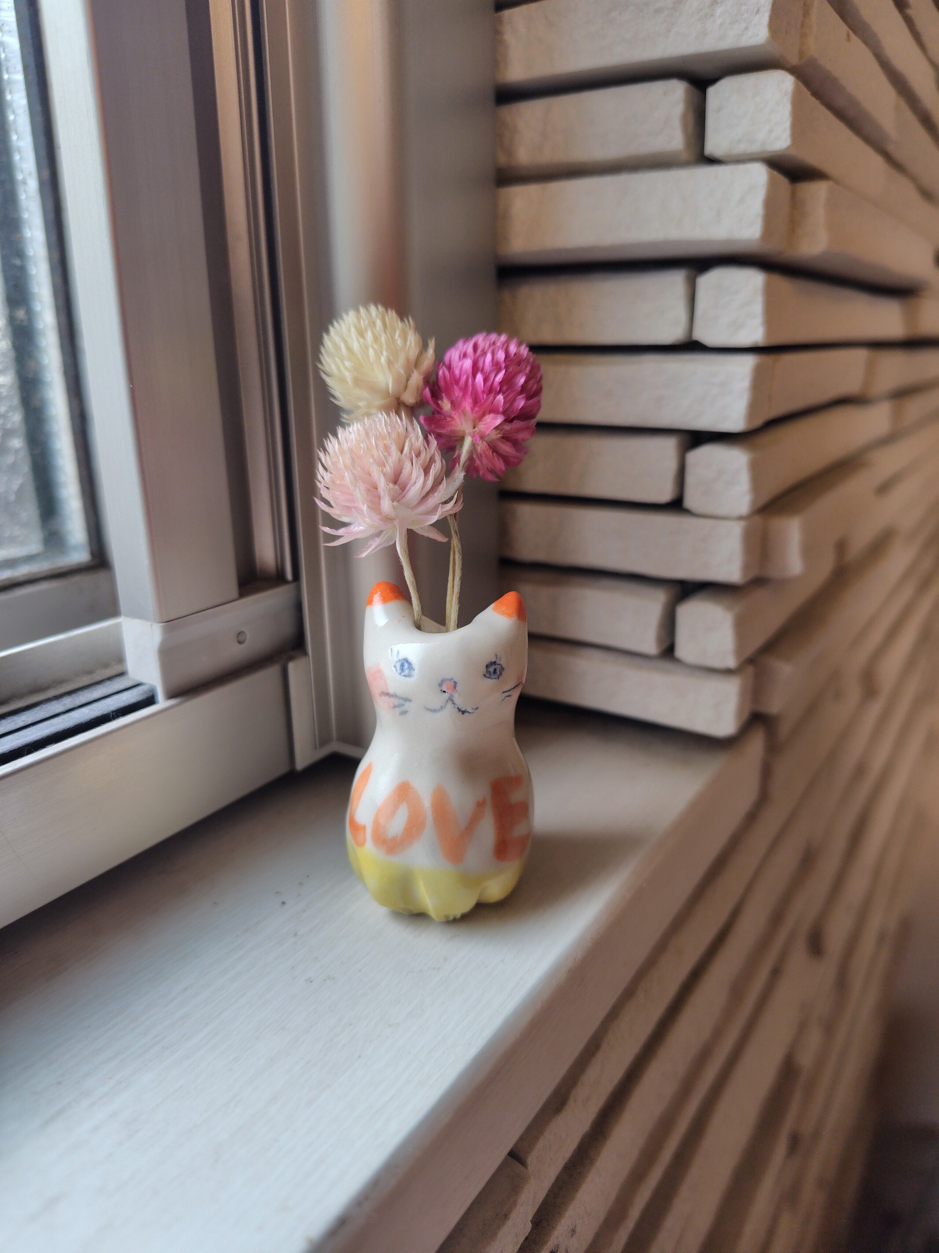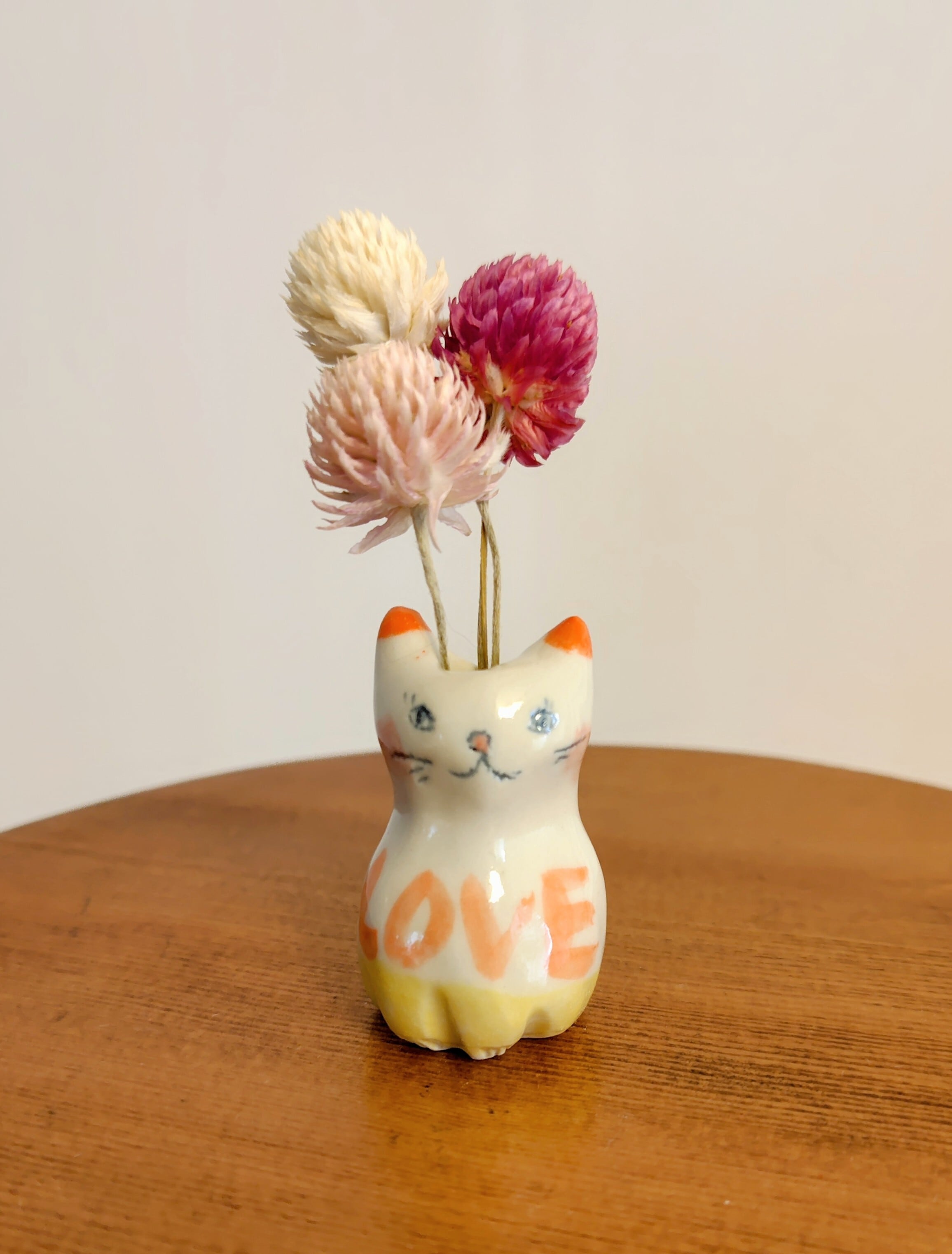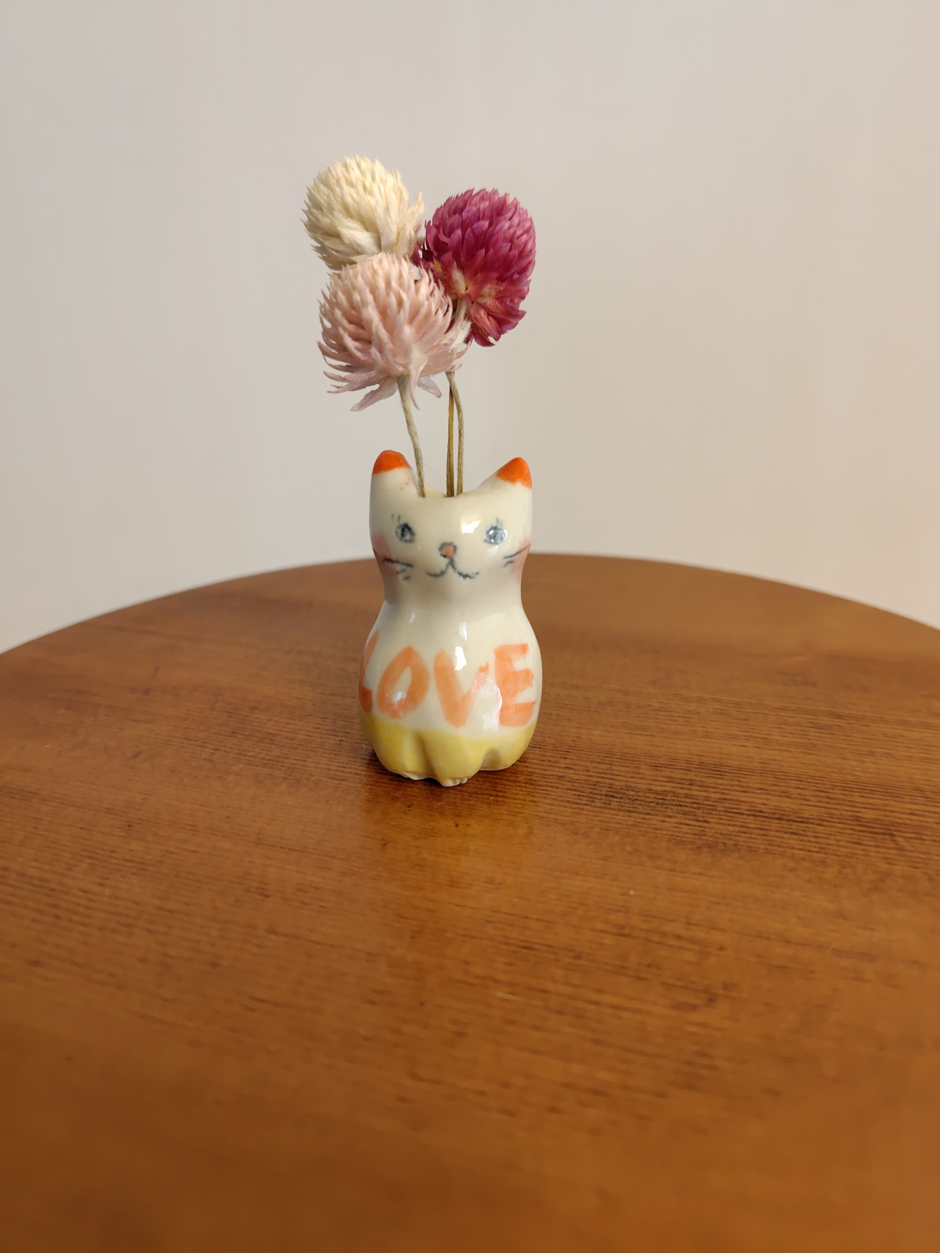 ねこ花びん⑭ ドライフラワー付き