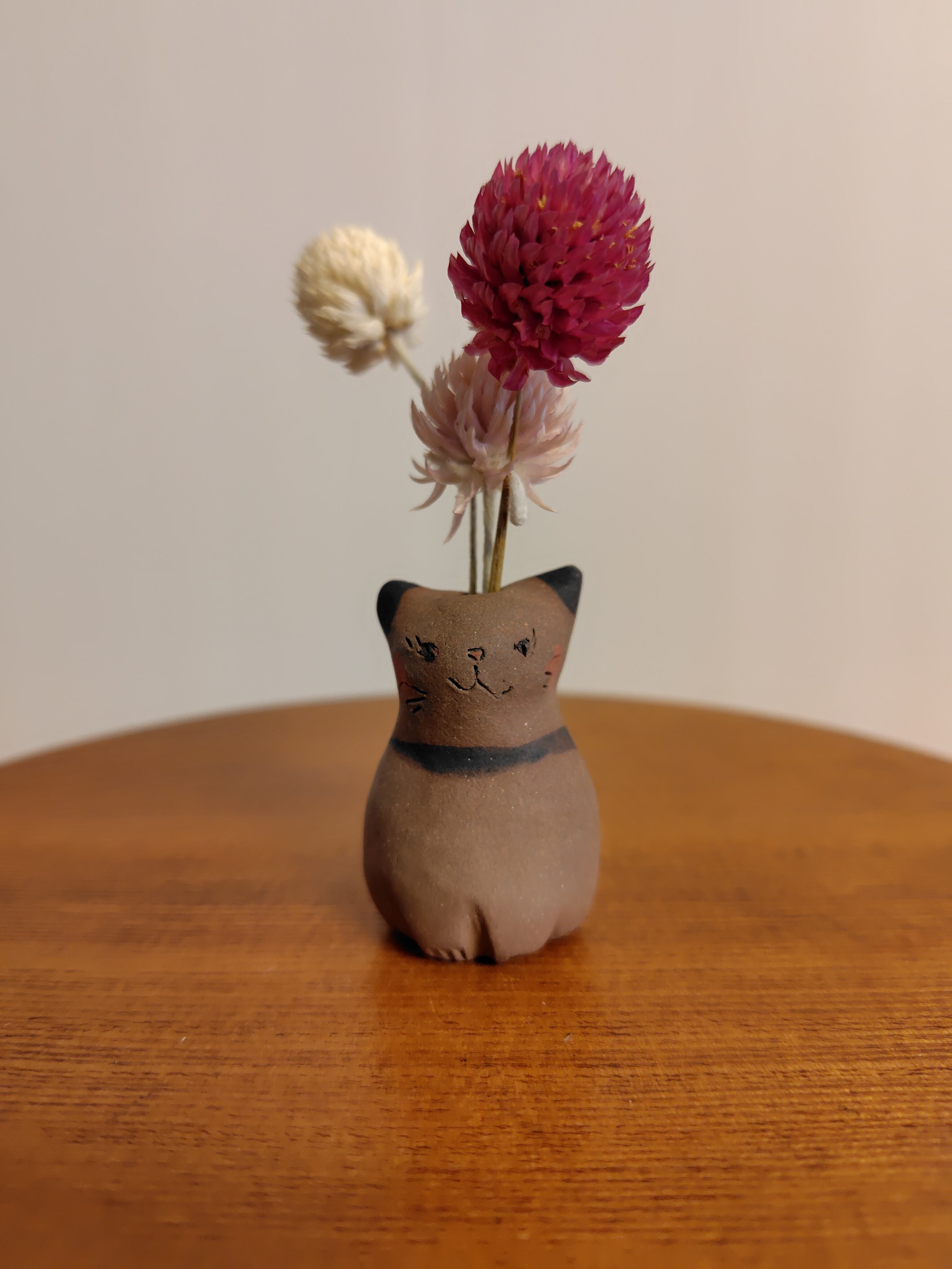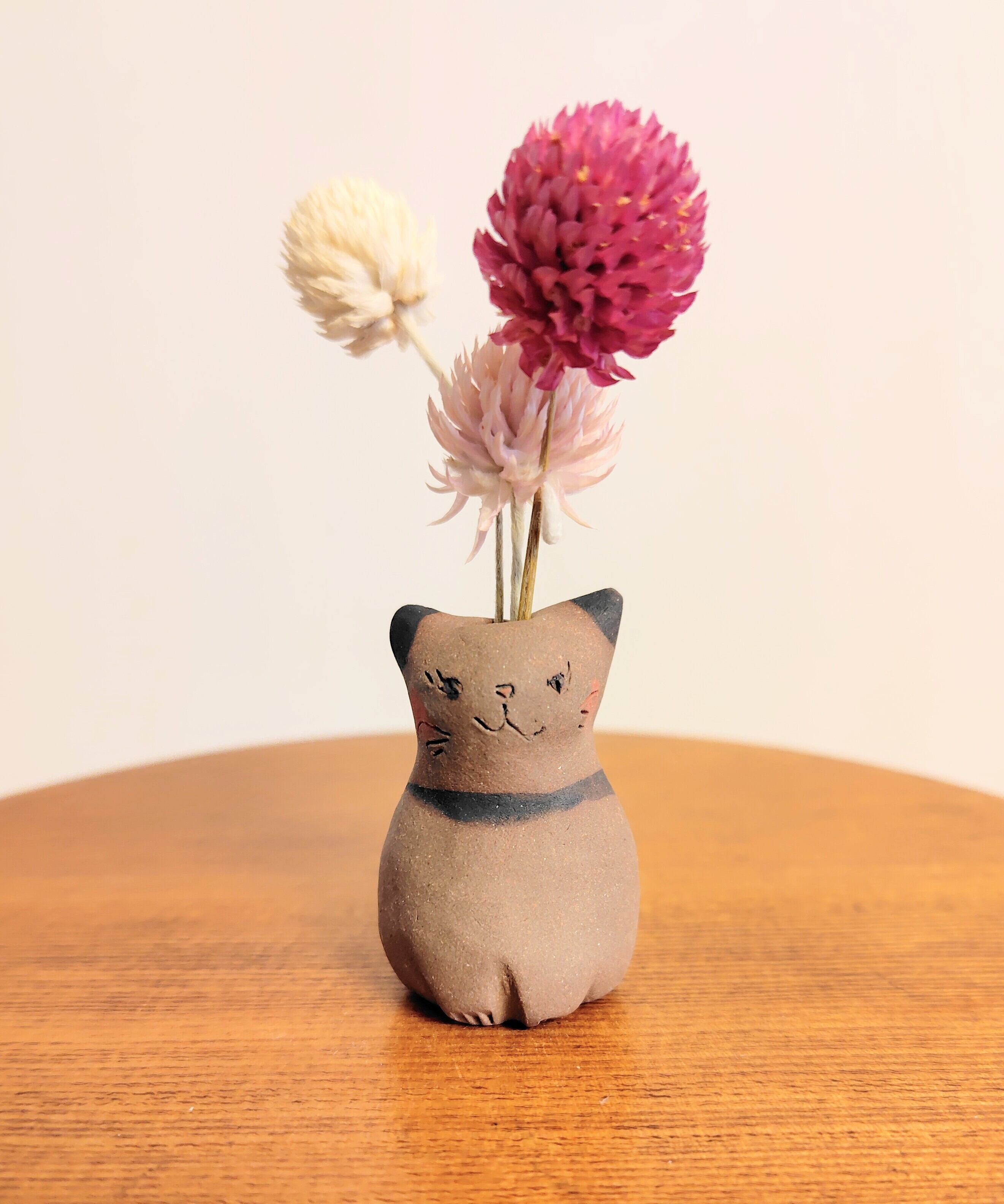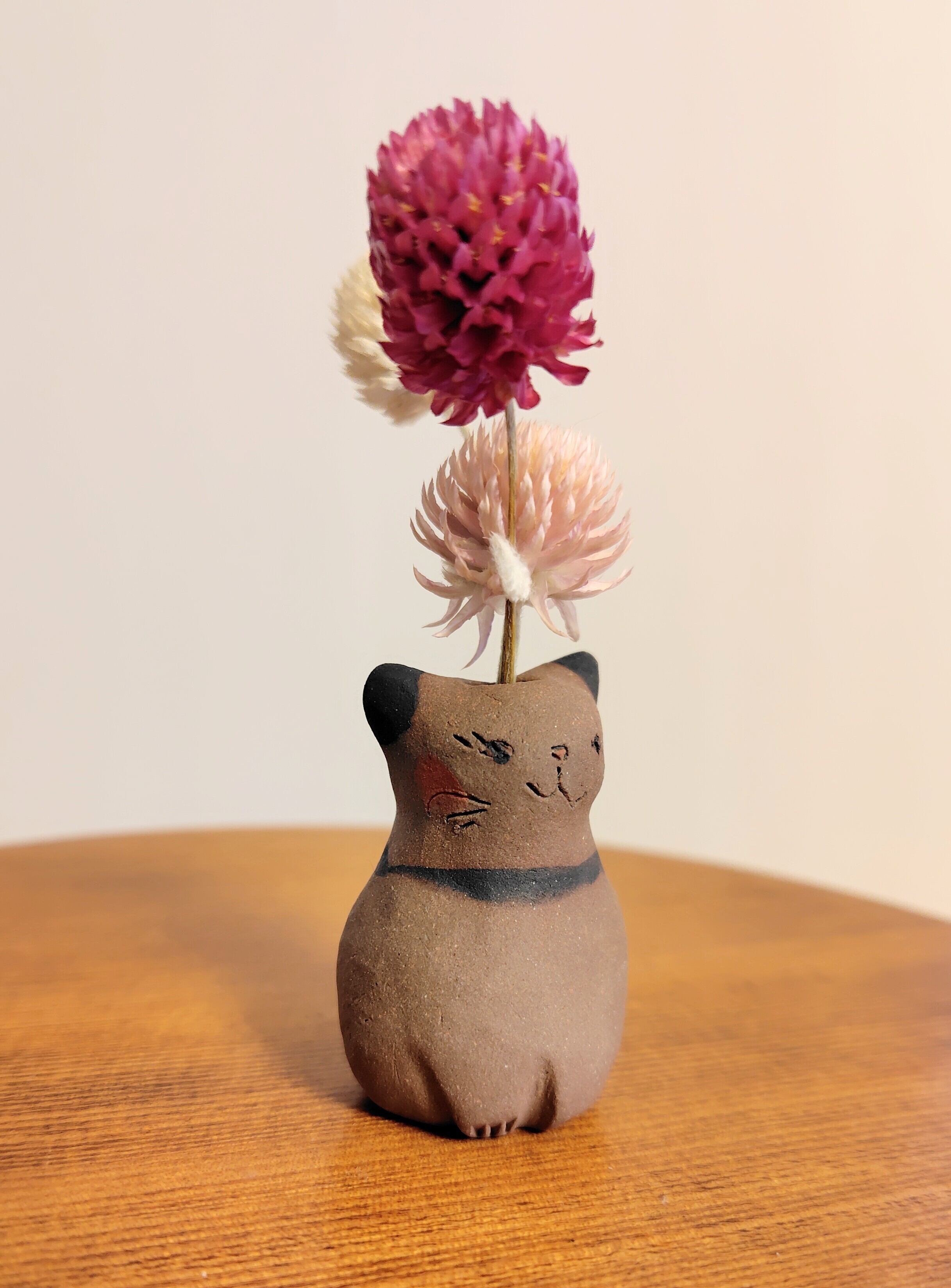 ねこ花びん㉒ ドライフラワー付き