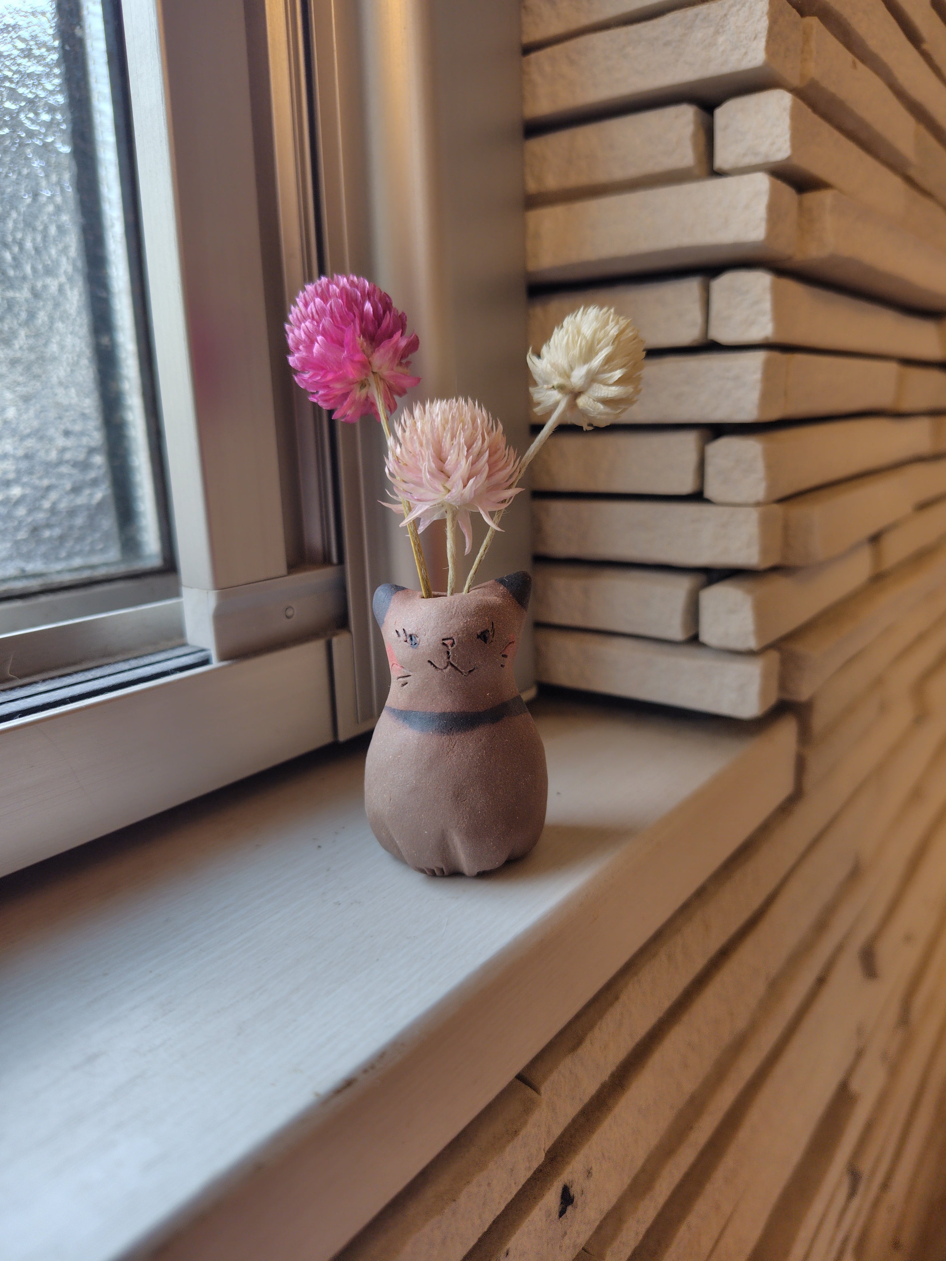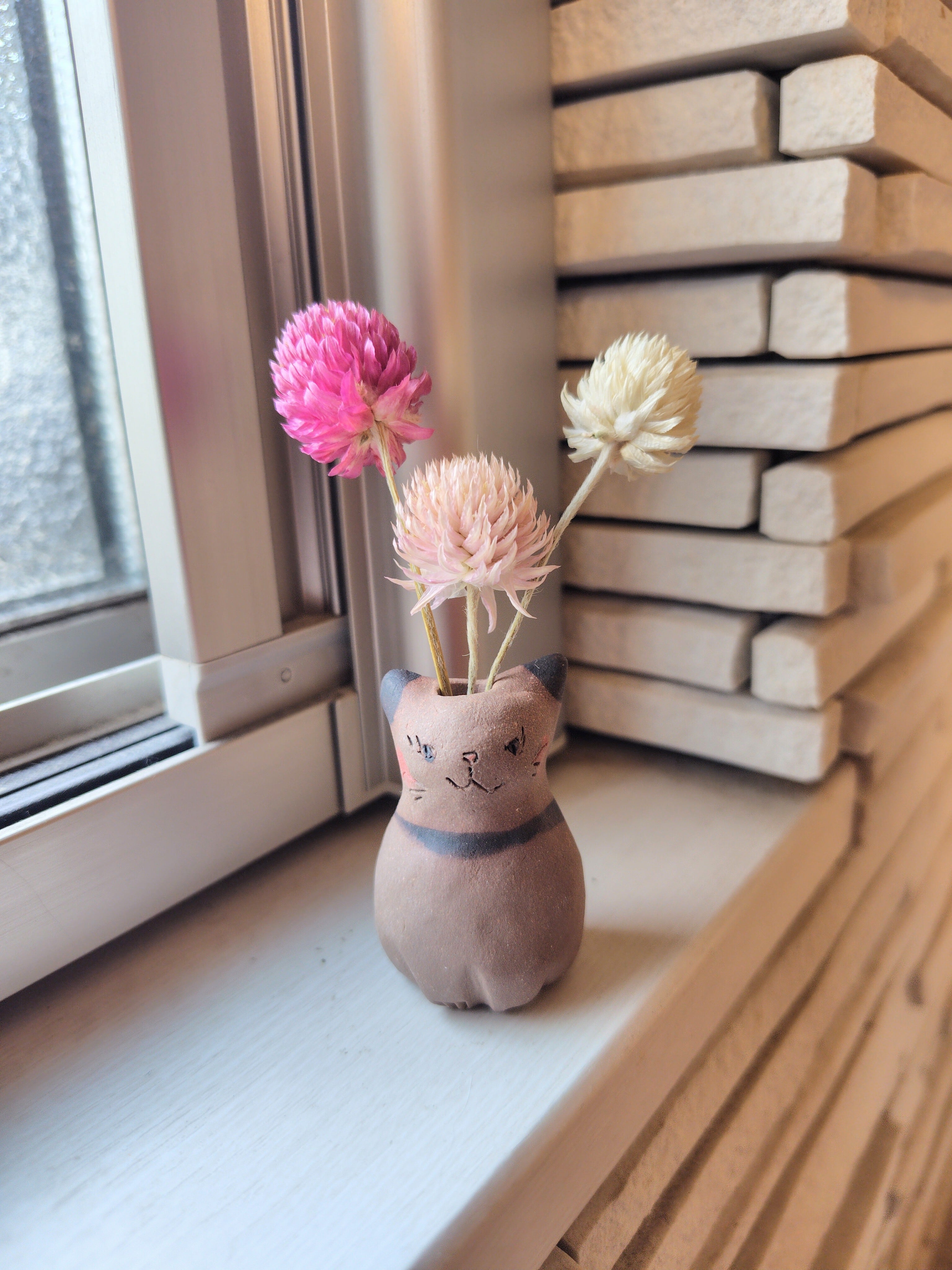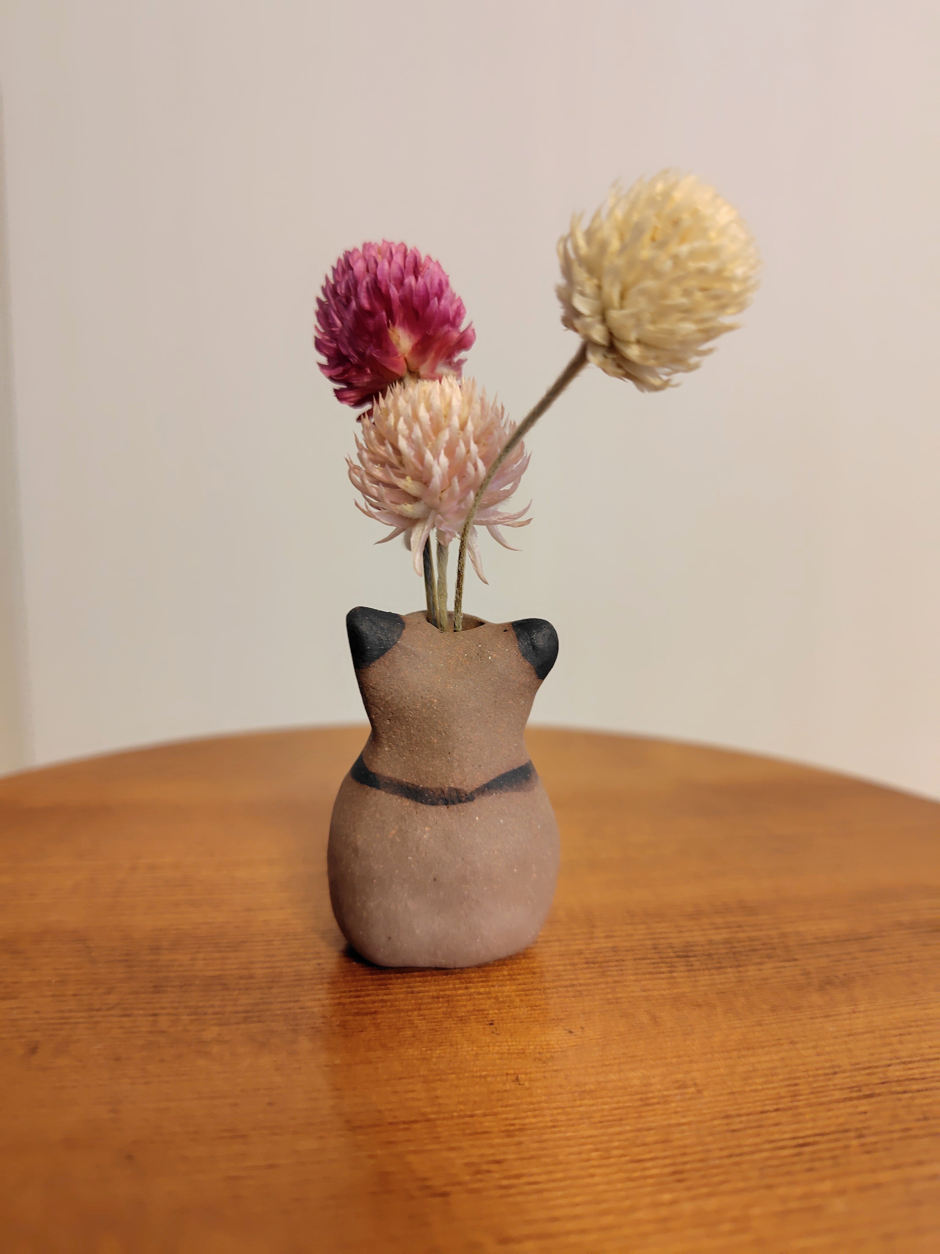 ねこ花びん㉒ ドライフラワー付き