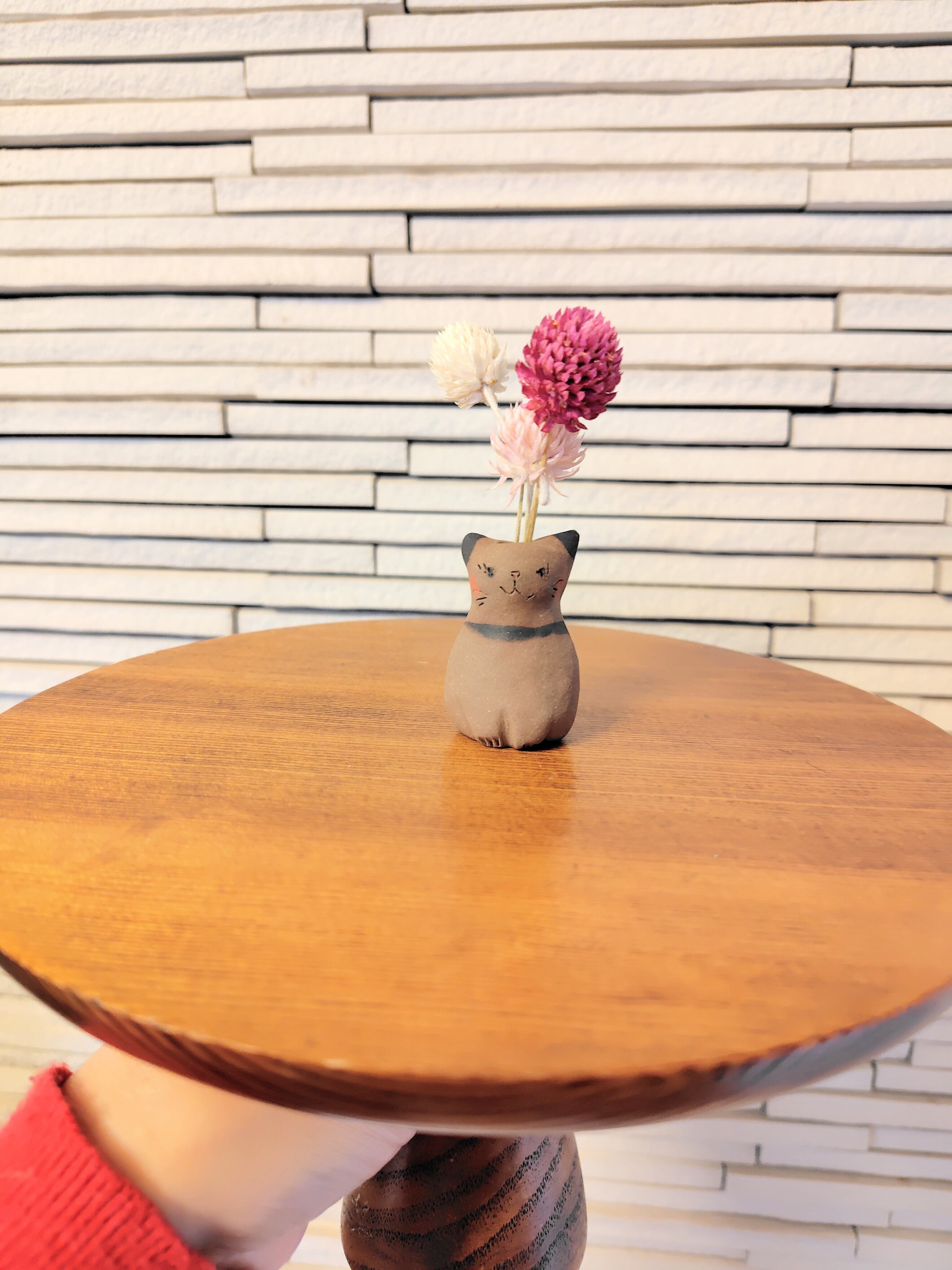 高さ約5センチセンチという絶妙なサイズ感で、ドライフラワーや、生花をお水を入れて飾る事もできます。お香立てとして使ったり、縁起物のねこちゃんのお髭入れとして使って楽しむこともできて、使い方は自由^_^ 可愛らしい姿を見るたびに、心が和むことでしょう!