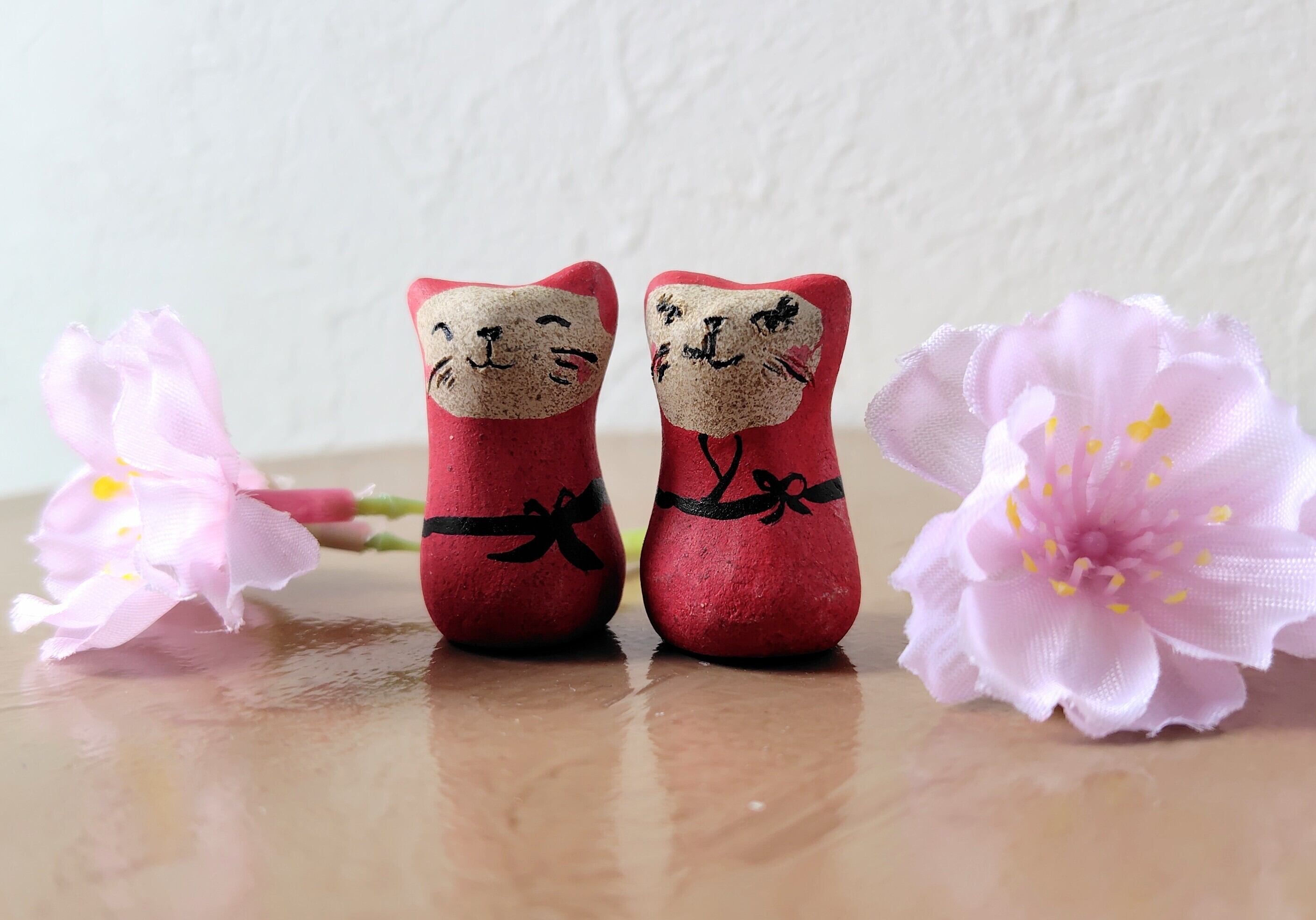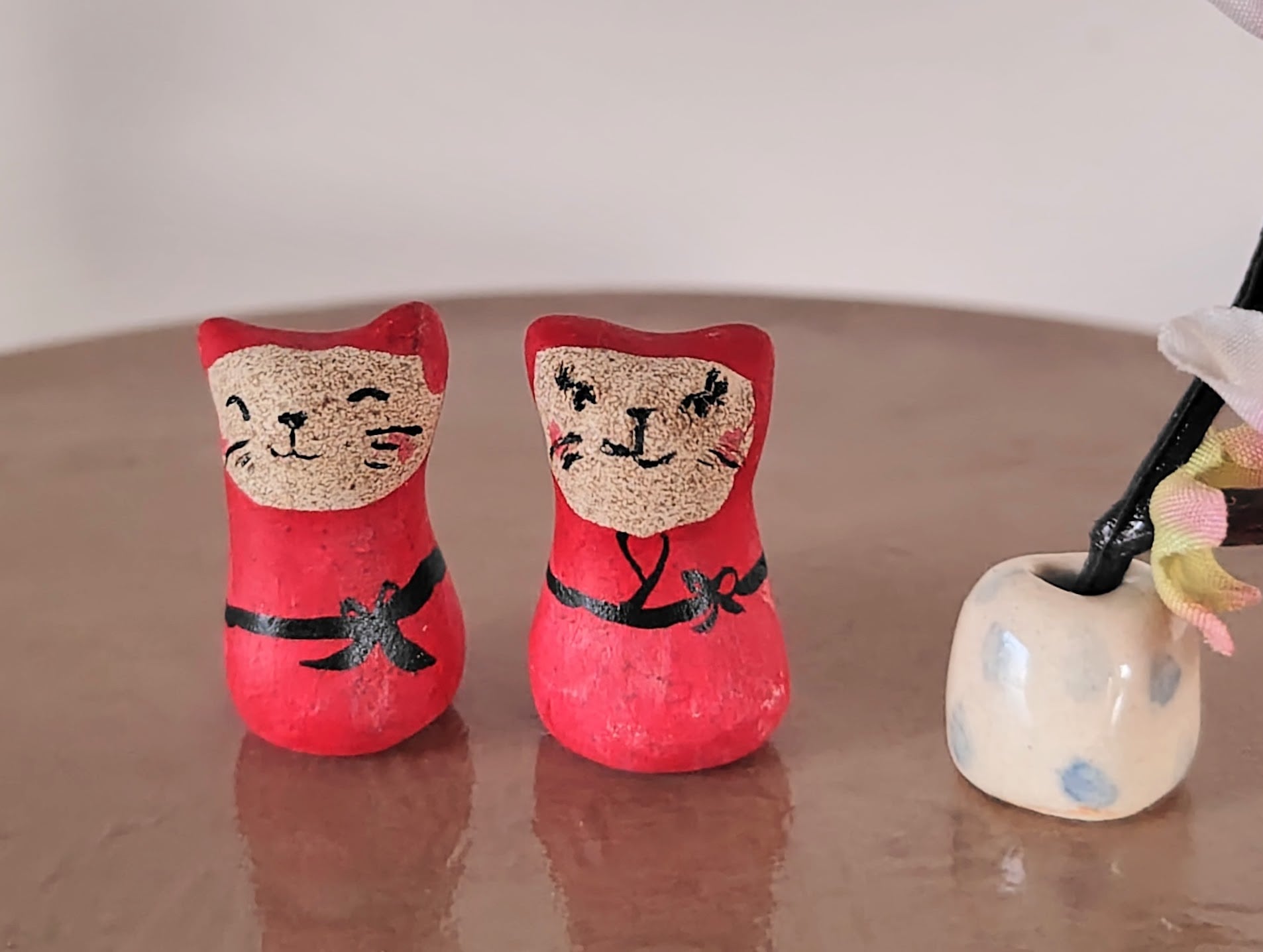 オーブン陶土から制作した忍者猫。高さ約3センチ。一番小さなサイズのペアです