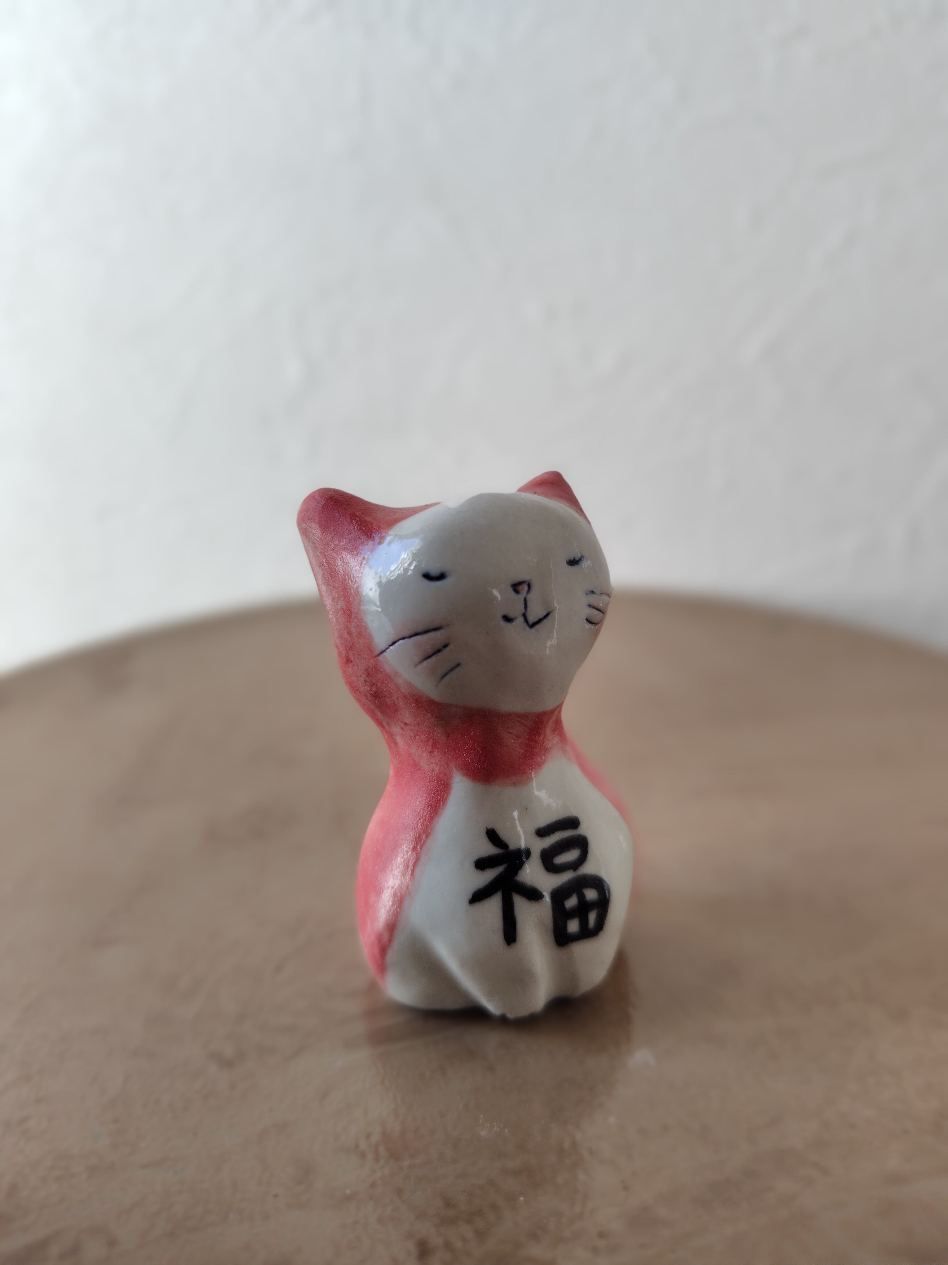 磁器の土から手作りした陶芸(やきもの)の猫。